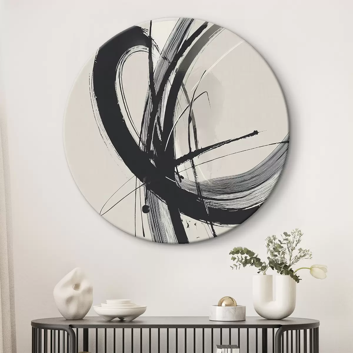 Quadri rotondi Pennellate astratte e minimaliste r45582