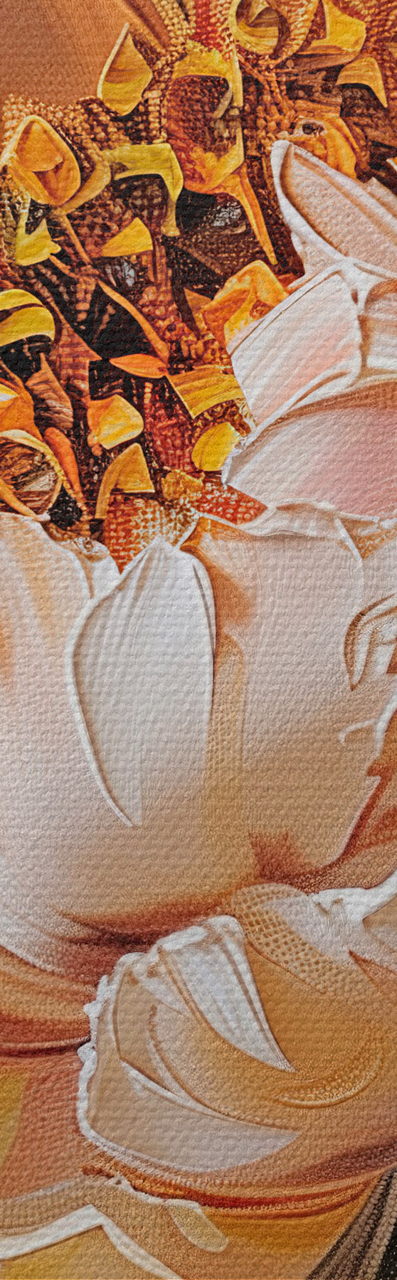 Sono disponibili tre tipi di materiale per l'ordinazione: Economic Canvas - materiale denso e resistente per la stampa digitale, identico alla tela del pittore, superficie impermeabile, riproduzione realistica dei dettagli, materiale a grana media. Premium Canvas - la trama ricorda la tela di un pittore (piccoli fili intrecciati). Riproduzione morbida e dettagliata dell'immagine su una superficie opaca. Eco-Premium - tessuto di alta qualità in 100% cotone. Grazie alle fibre naturali di cotone, il materiale è durevole e resistente all'usura. Eccellente riproduzione dei colori e dei dettagli.