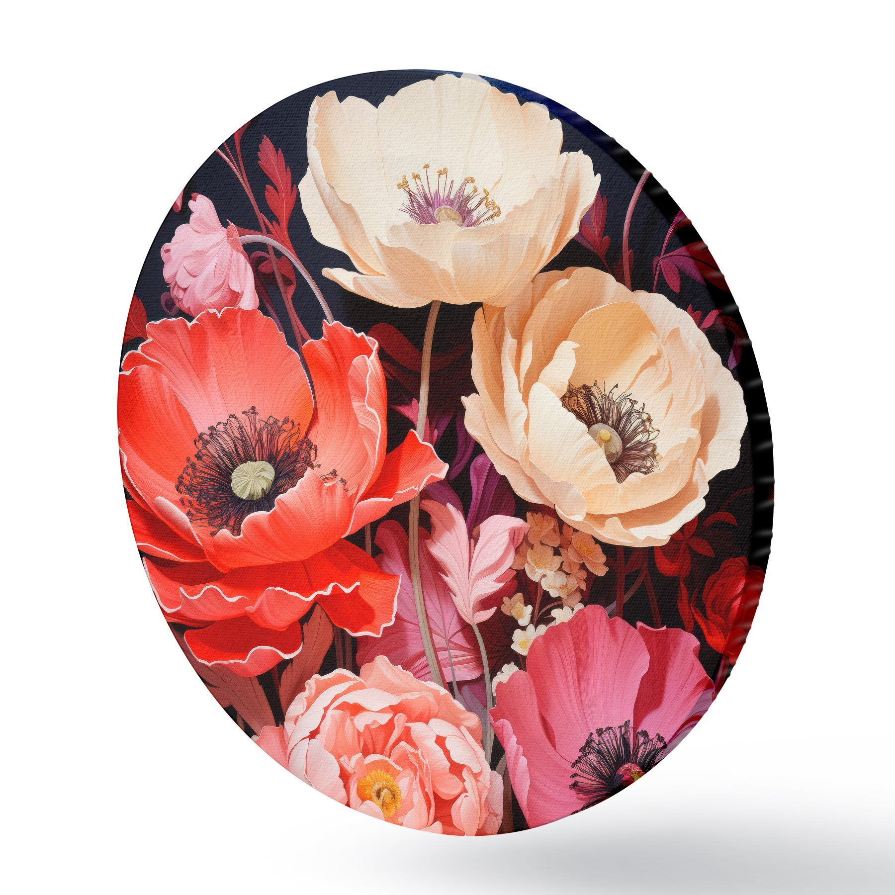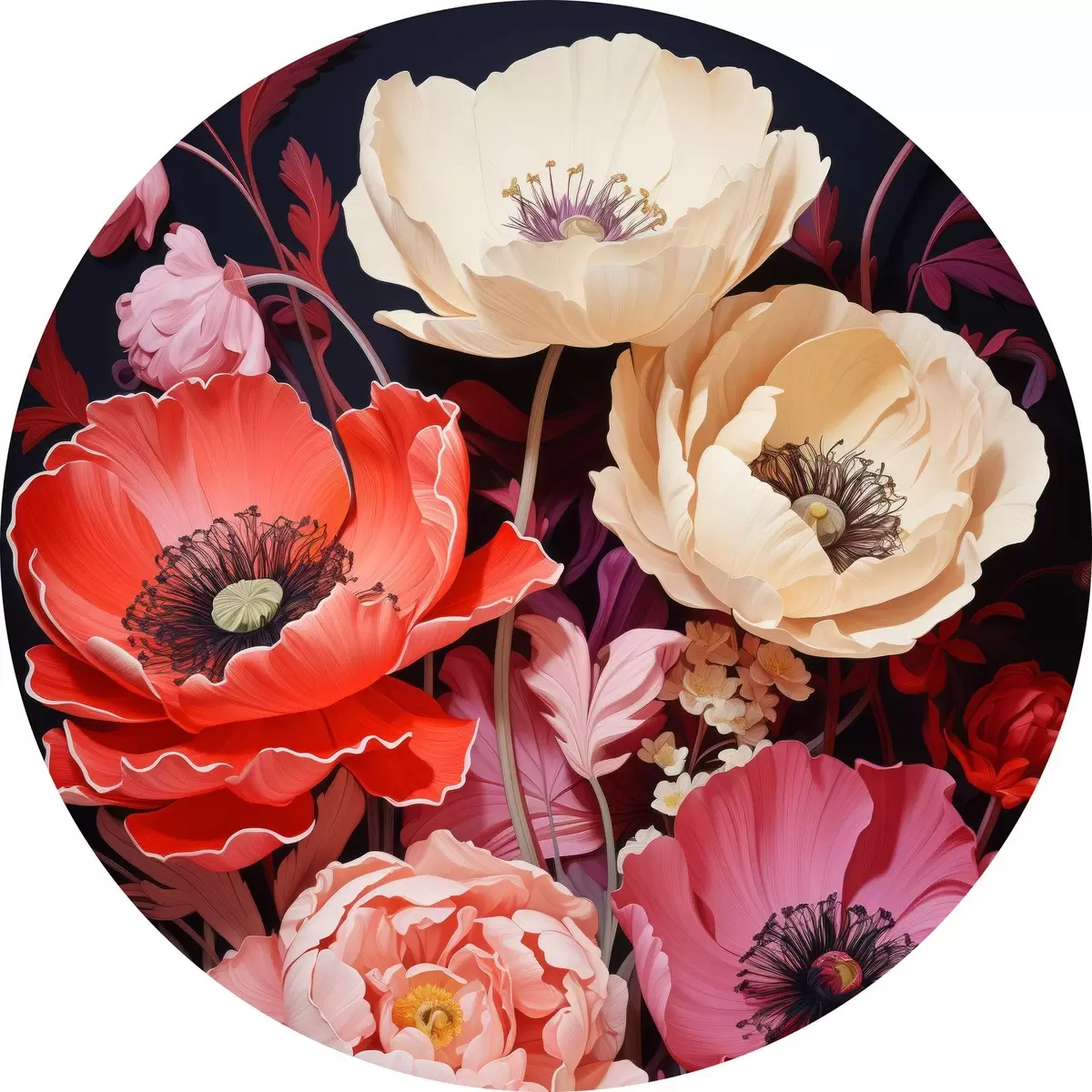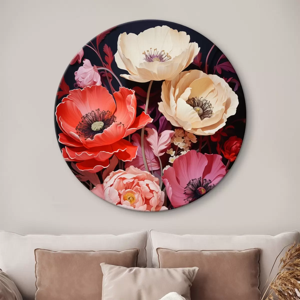 Quadri rotondi Bouquet di papaveri nelle tonalità del rosa e del rosso r45600