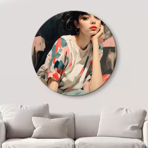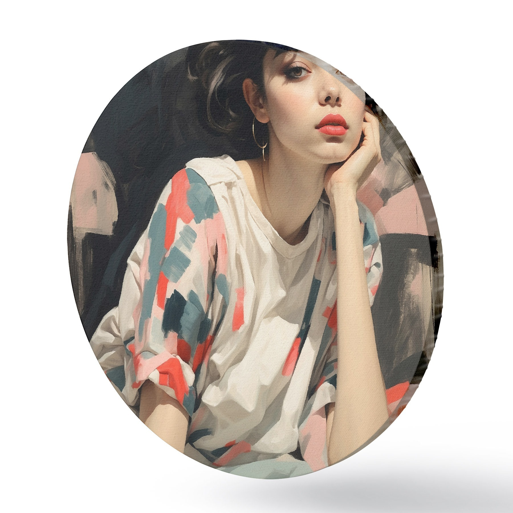Quadri rotondi Ritratto di una ragazza su uno sfondo con occhi e tratti astratti r45623