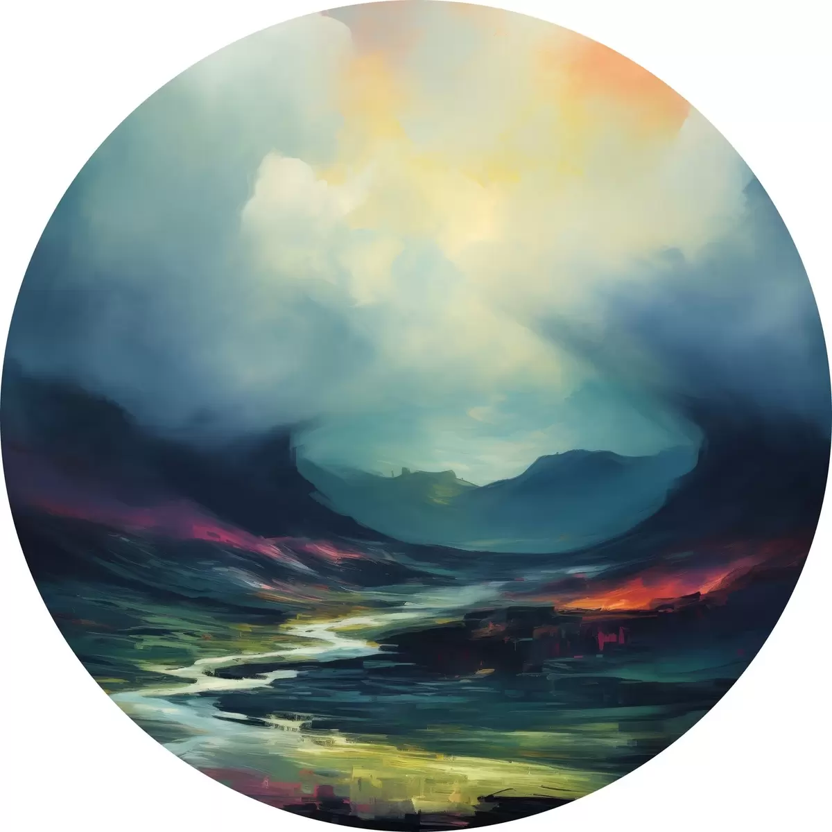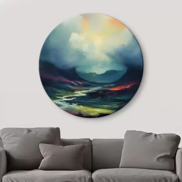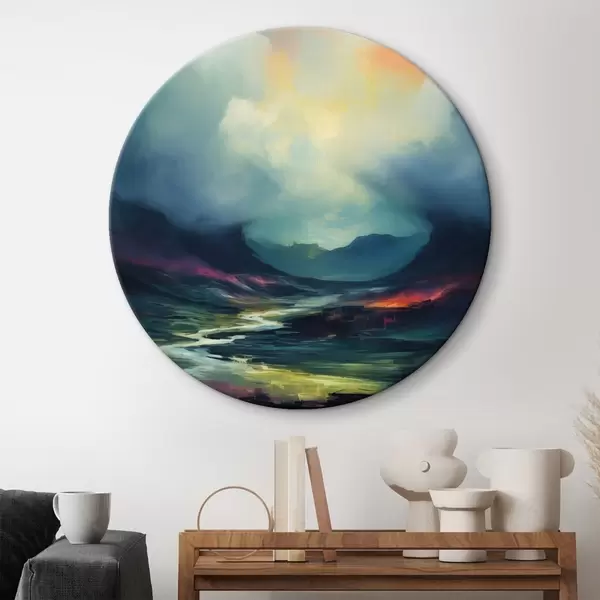 Quadri rotondi Paesaggio astratto con fiume e montagne r45627
