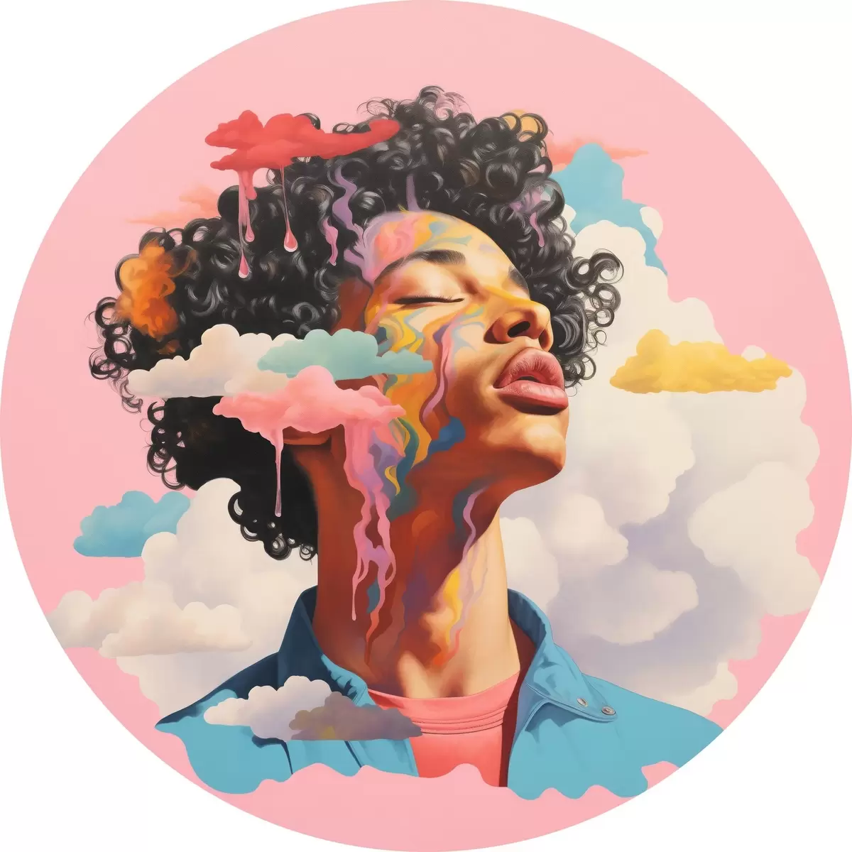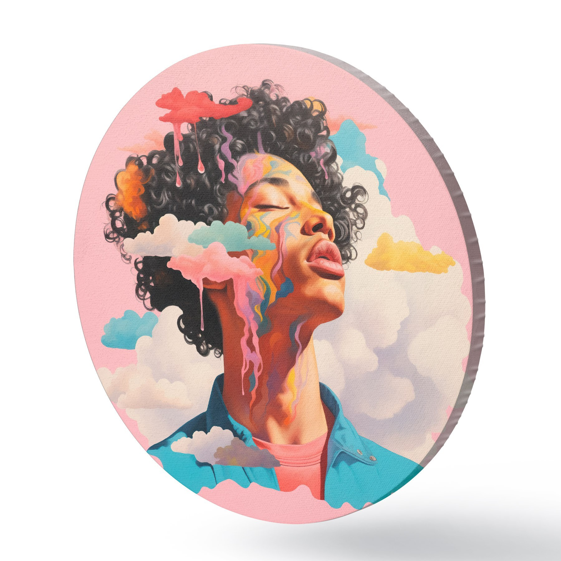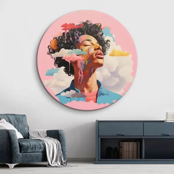 Quadri rotondi Sognatore tra le nuvole in stile acquerello r45636