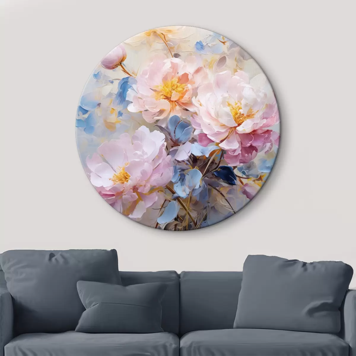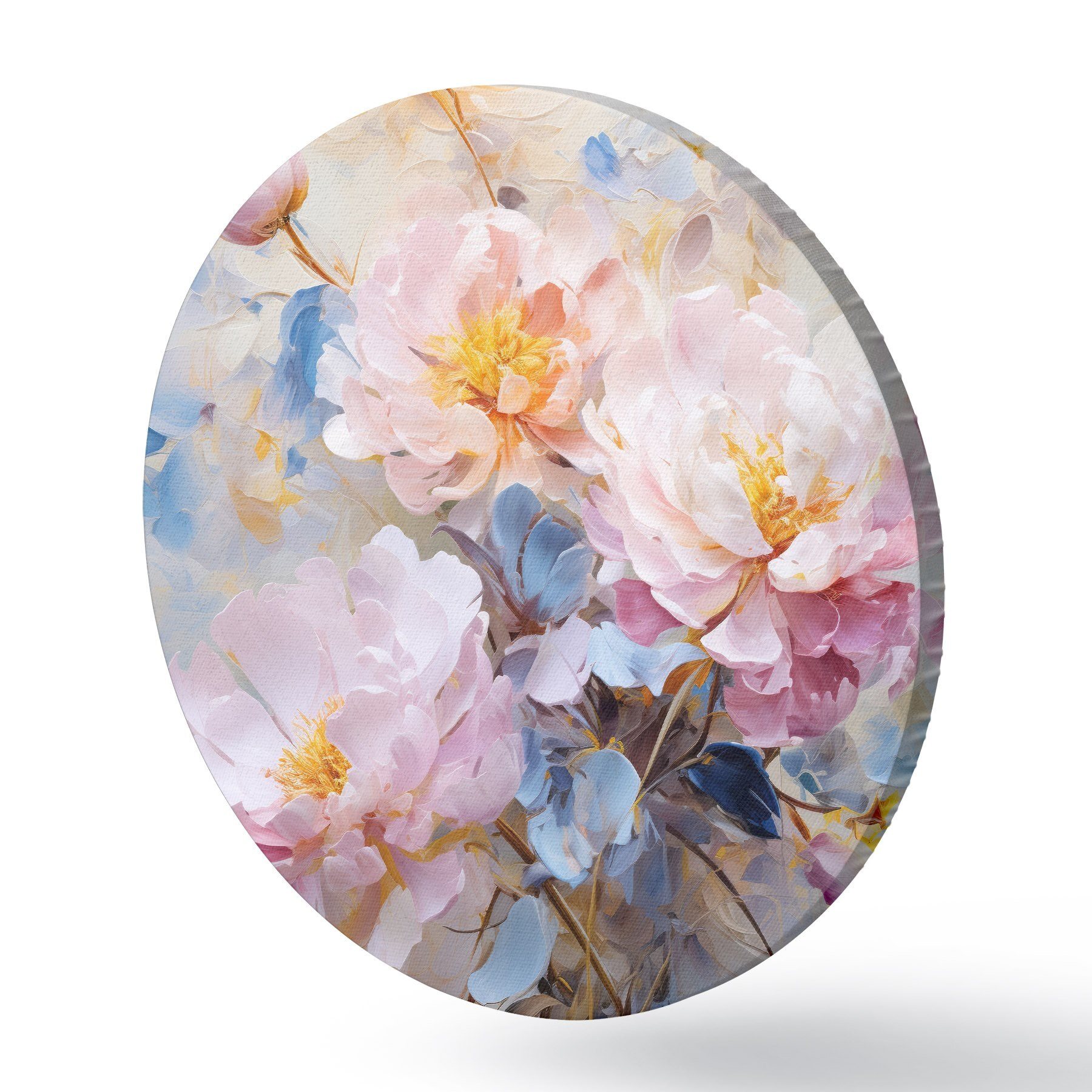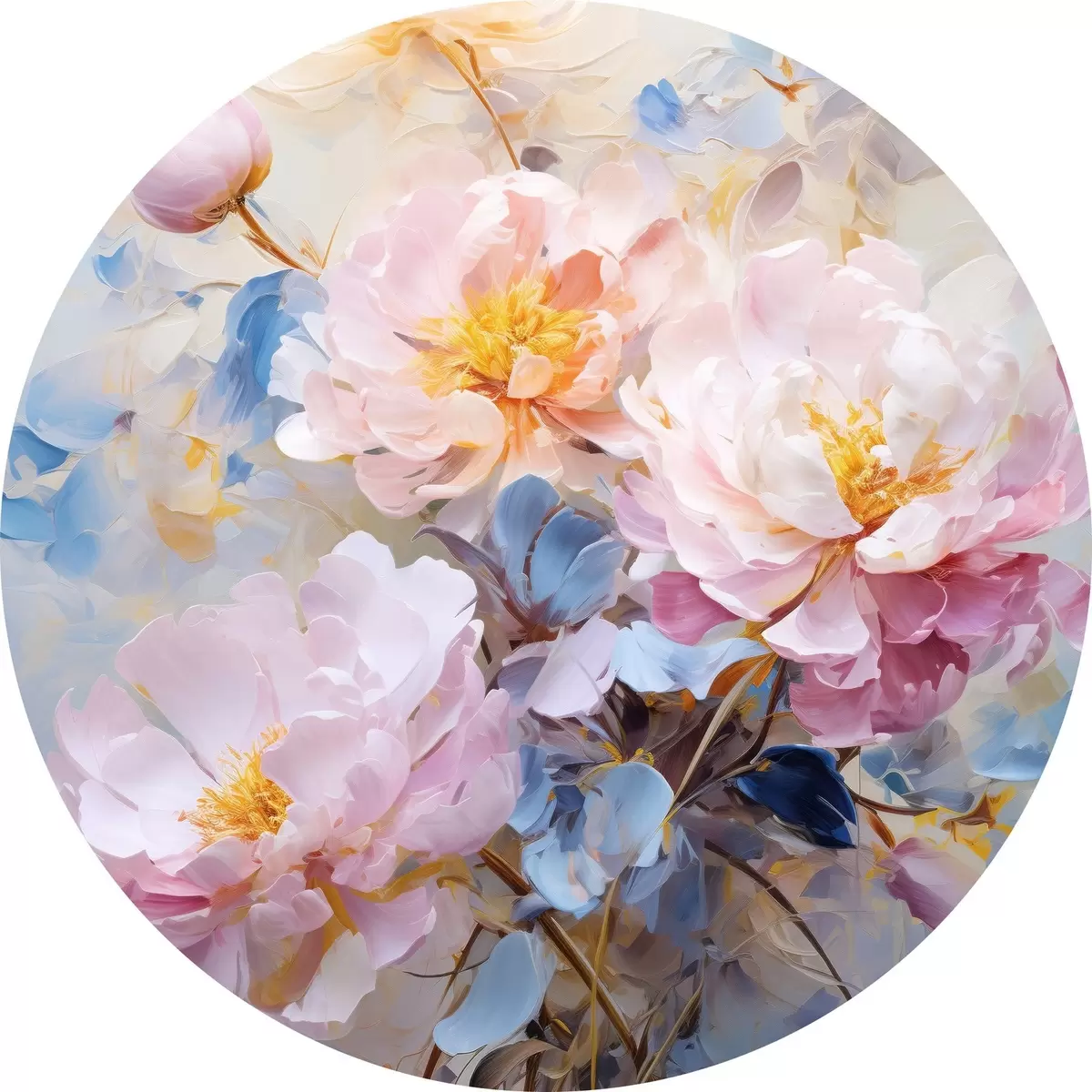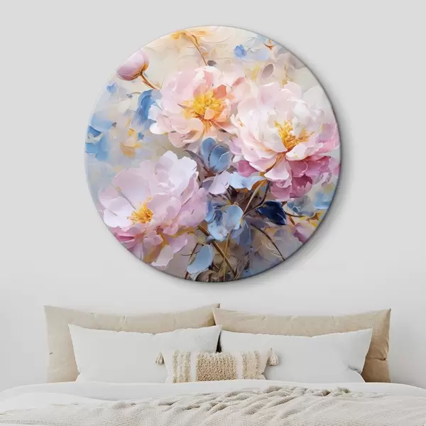 Quadri rotondi Fiori astratti: tonalità rosa e blu r45652