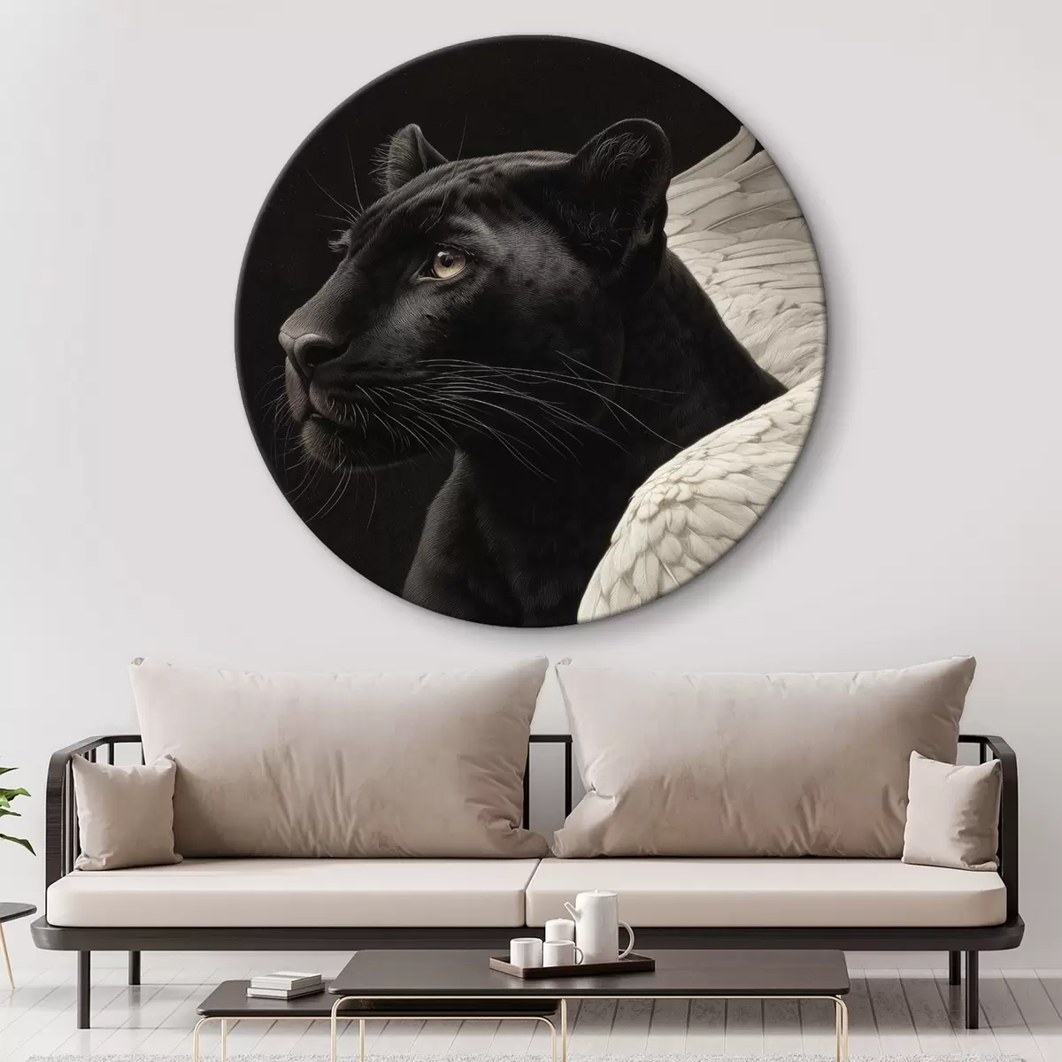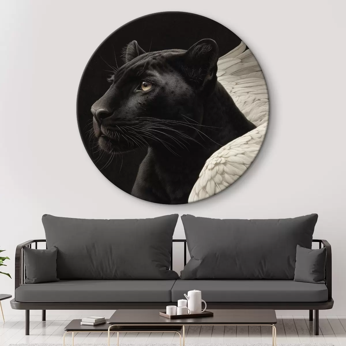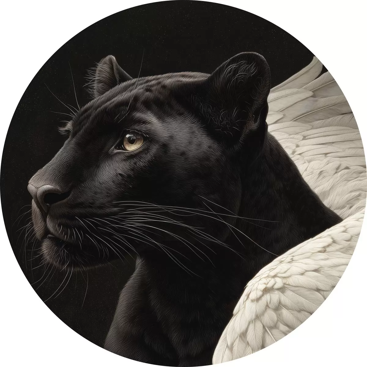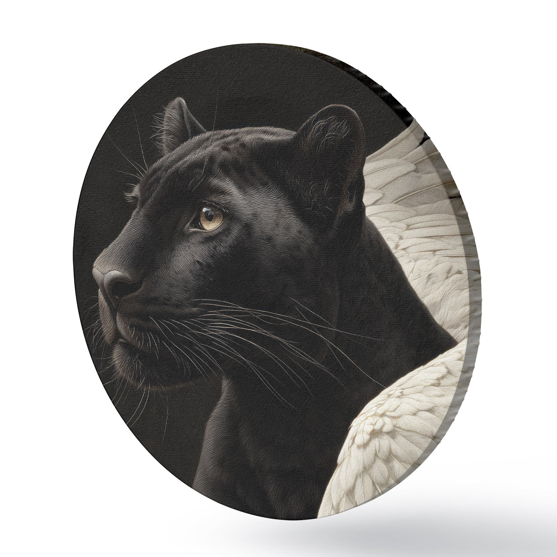 Quadri rotondi Pantera nera con ali in stile fantasy r45653