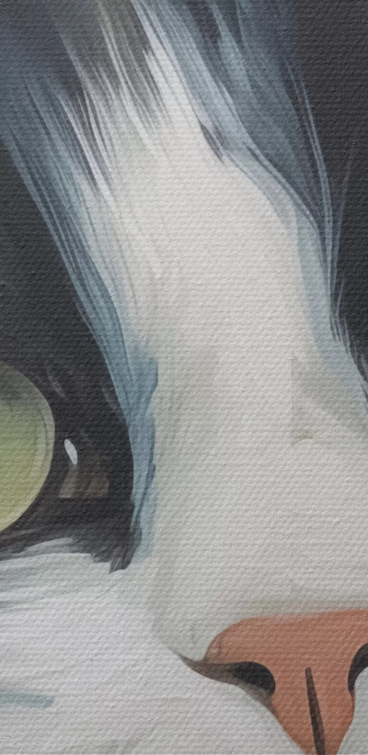 La fine trama dei fili di questa tela ricorda la superficie delle tele degli artisti professionisti.