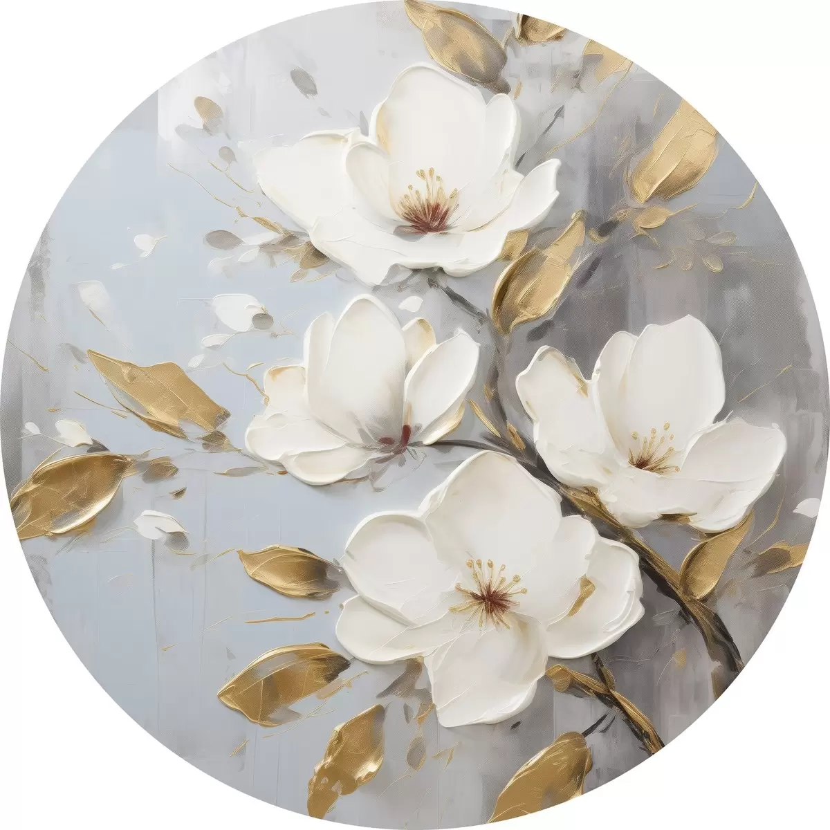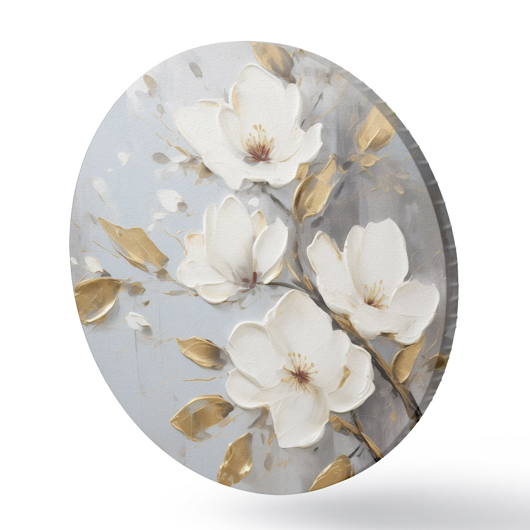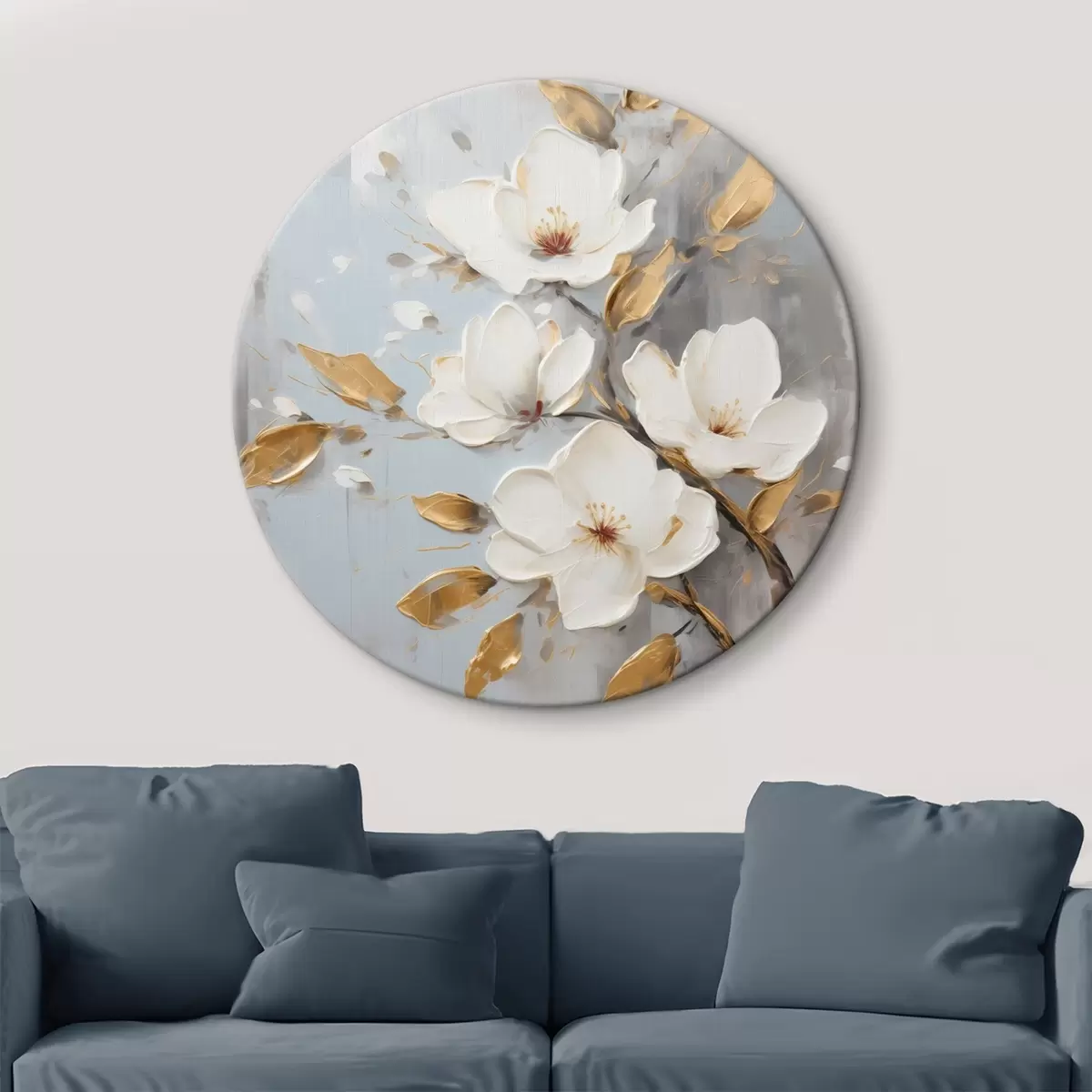 Quadri rotondi Ramo con fiori bianchi e foglie giallo-arancio r45692