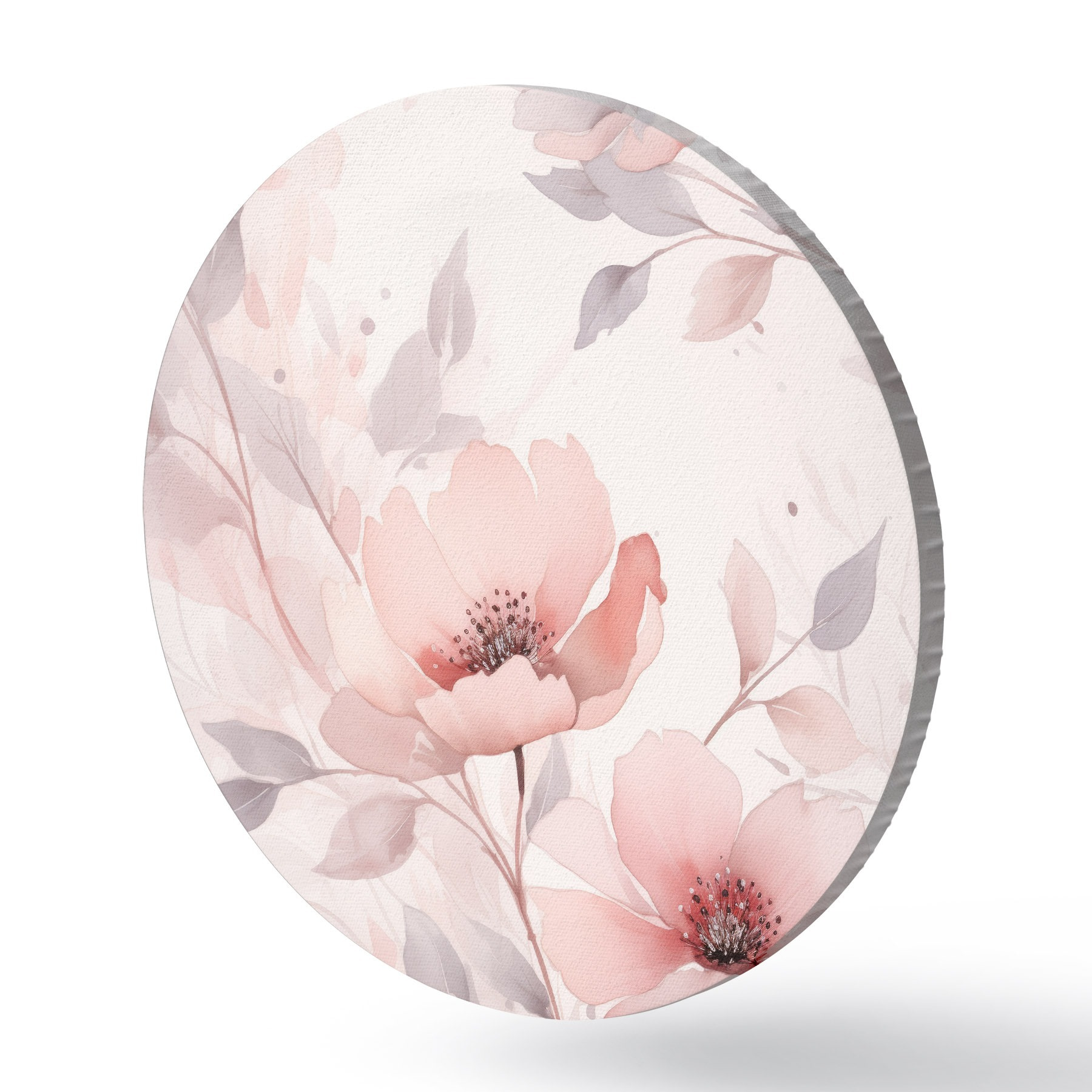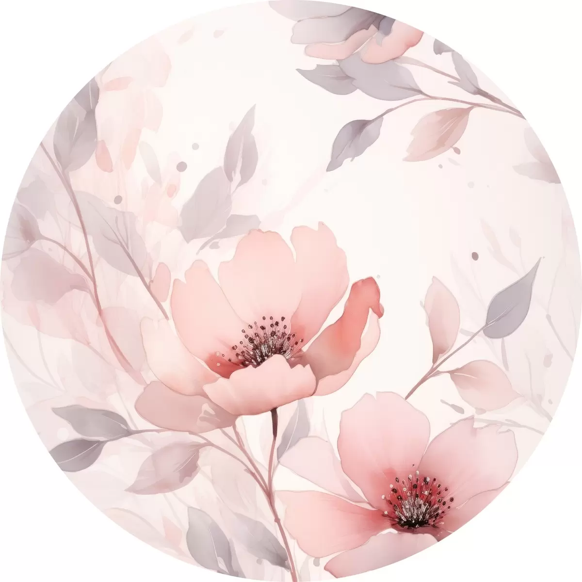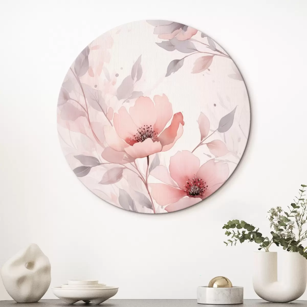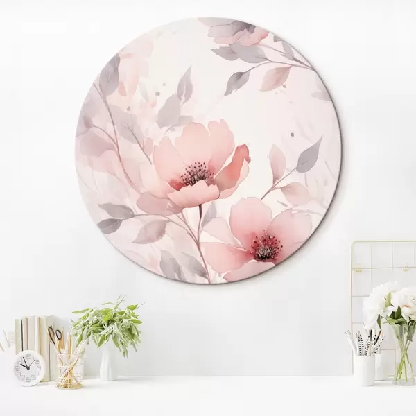 Quadri rotondi Delicati fiori rosa-grigio con effetto acquerello r45702