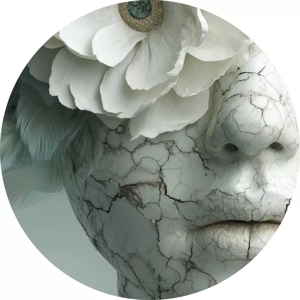Immagine faccia di marmo di una ragazza con un fiore Nr r45709