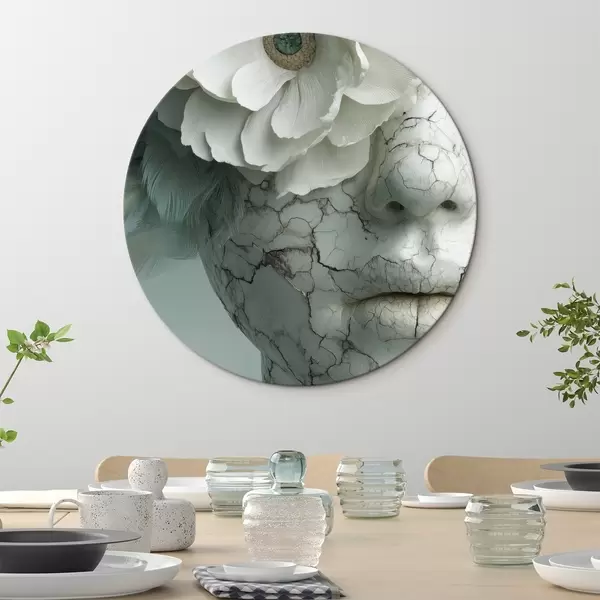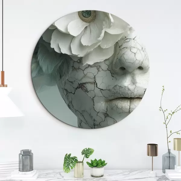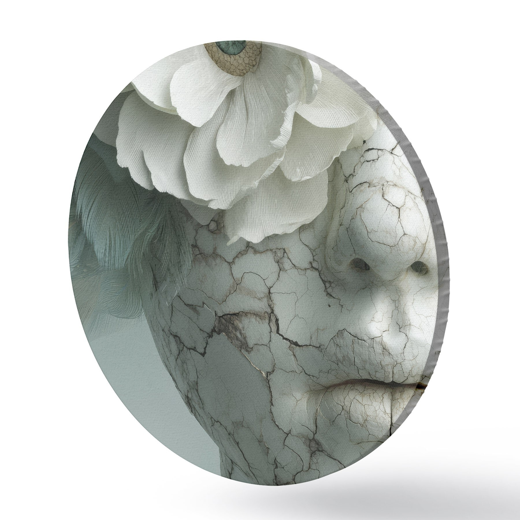 Quadri rotondi faccia di marmo di una ragazza con un fiore r45709