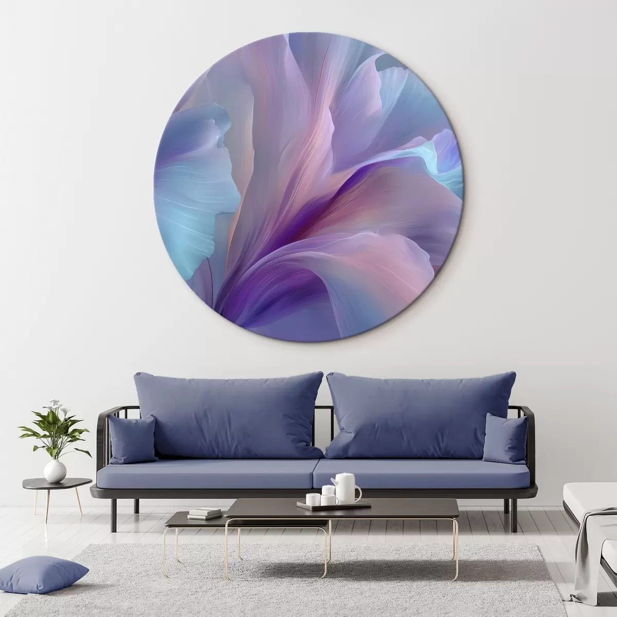 Quadri rotondi un delicato fiore fantastico con petali nei toni del viola, blu e rosa. r45711