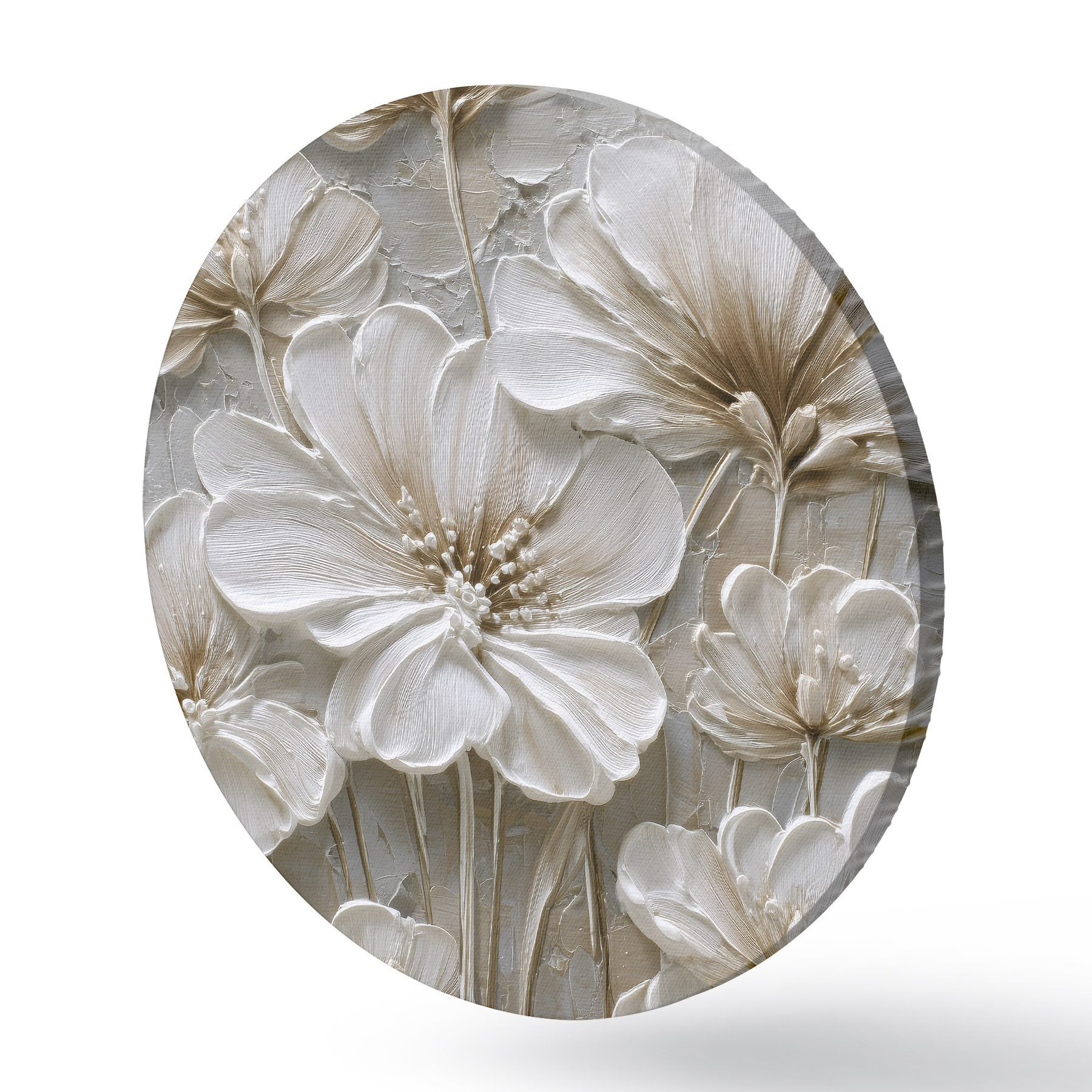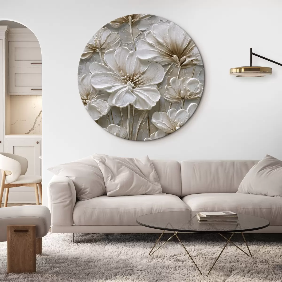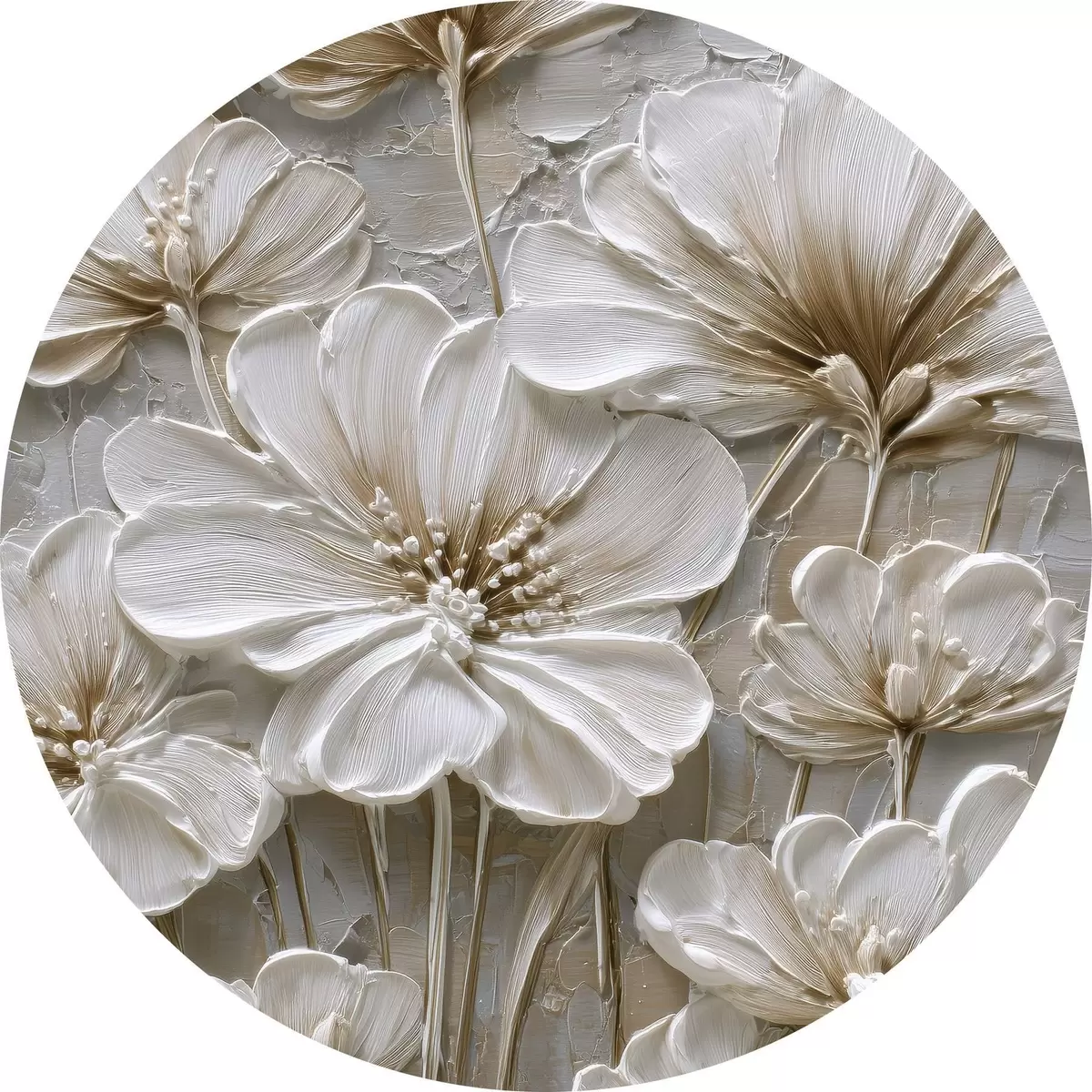 Quadri rotondi fiori color crema con effetto impasto r45712