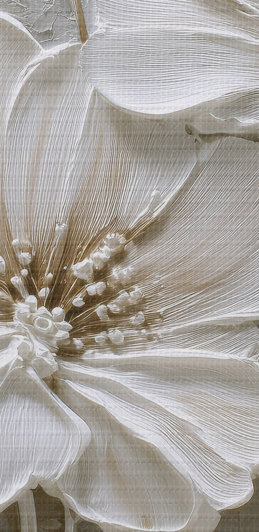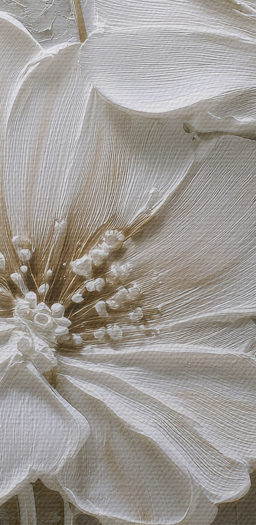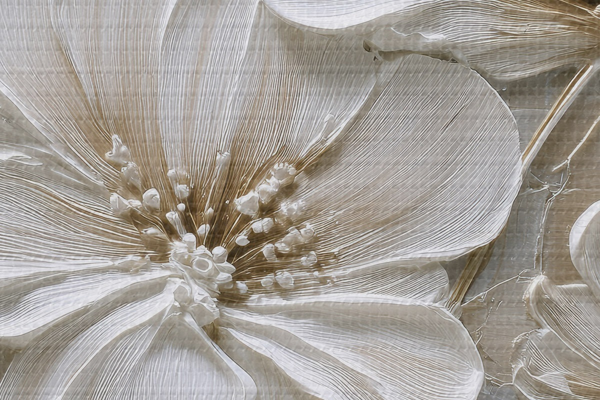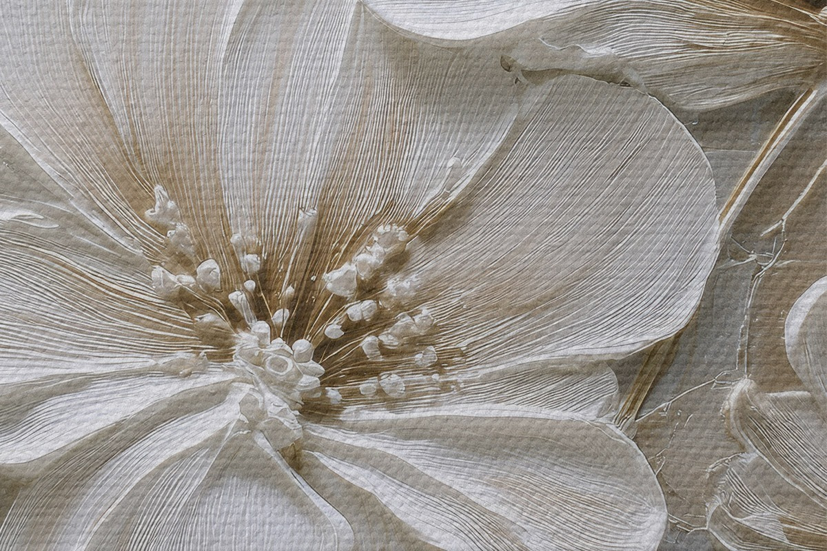 Quadri rotondi fiori color crema con effetto impasto r45712