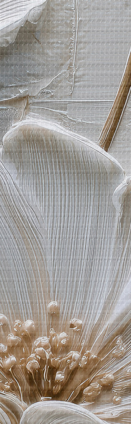 Quadri rotondi fiori color crema con effetto impasto r45713