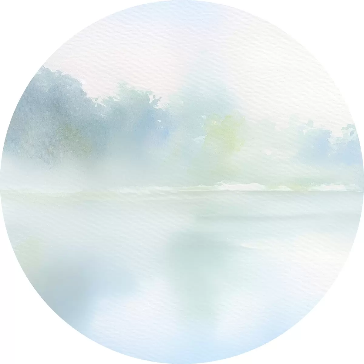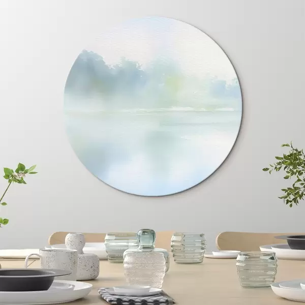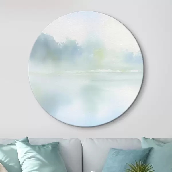 Quadri rotondi lago acquerellato nei toni del blu r45714
