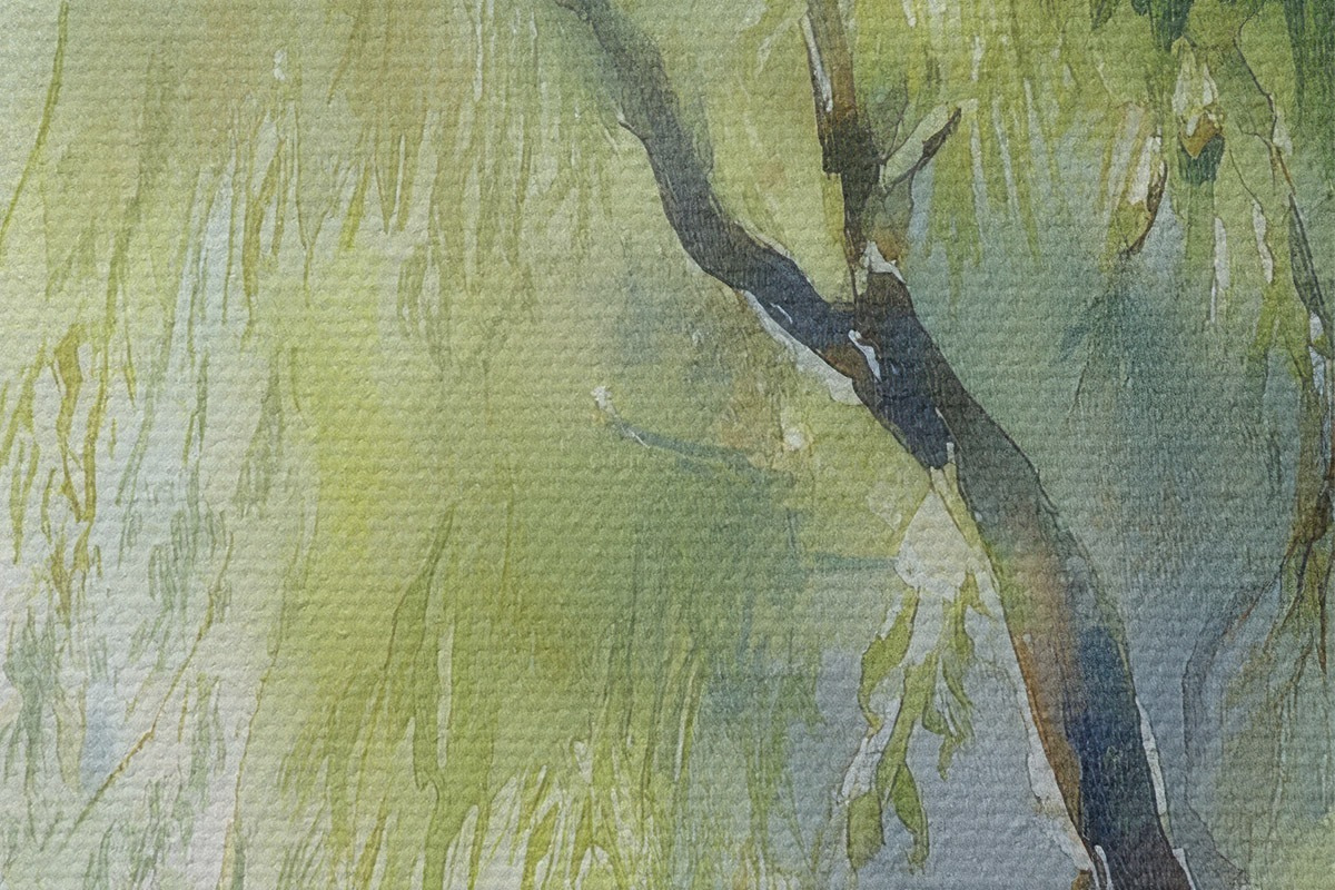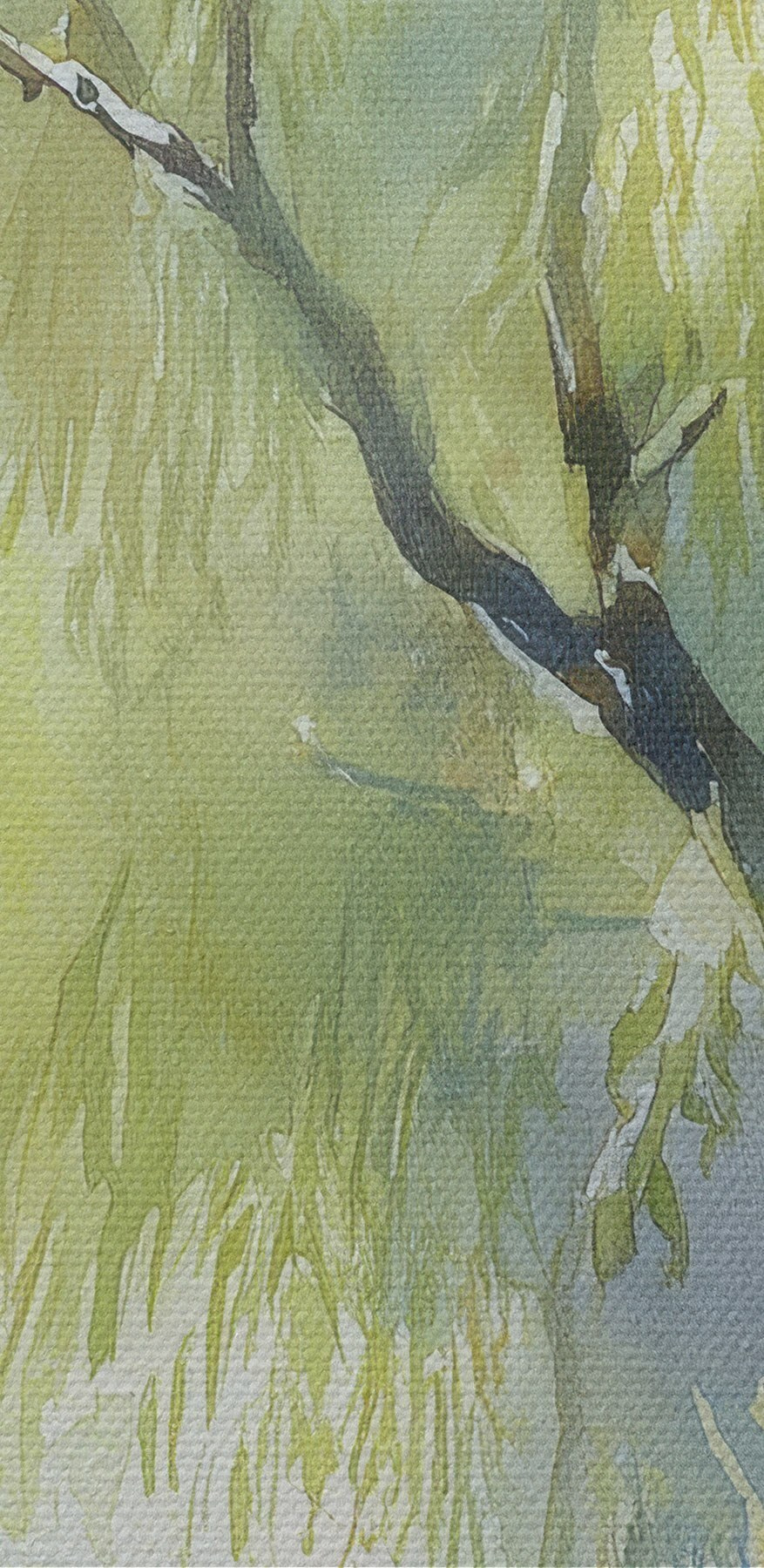 Immagine salice sulla riva del lago in stile acquerello Nr r45715