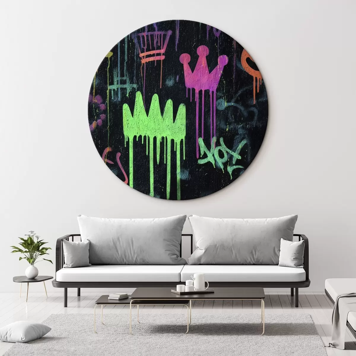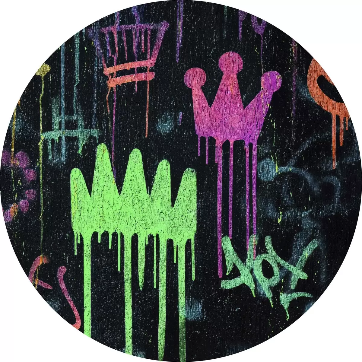 Quadri rotondi graffiti luminosi su sfondo scuro r45718