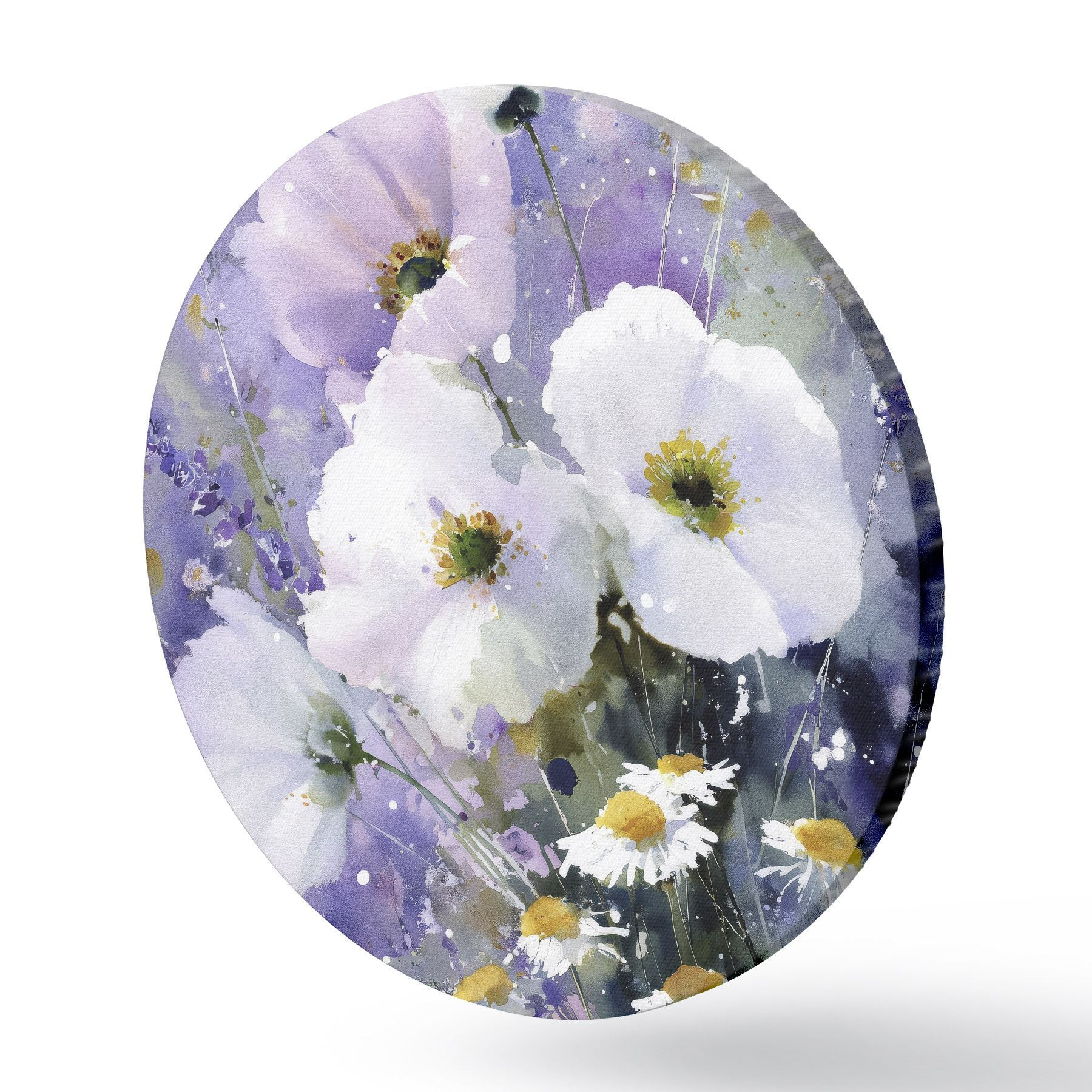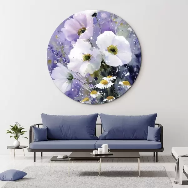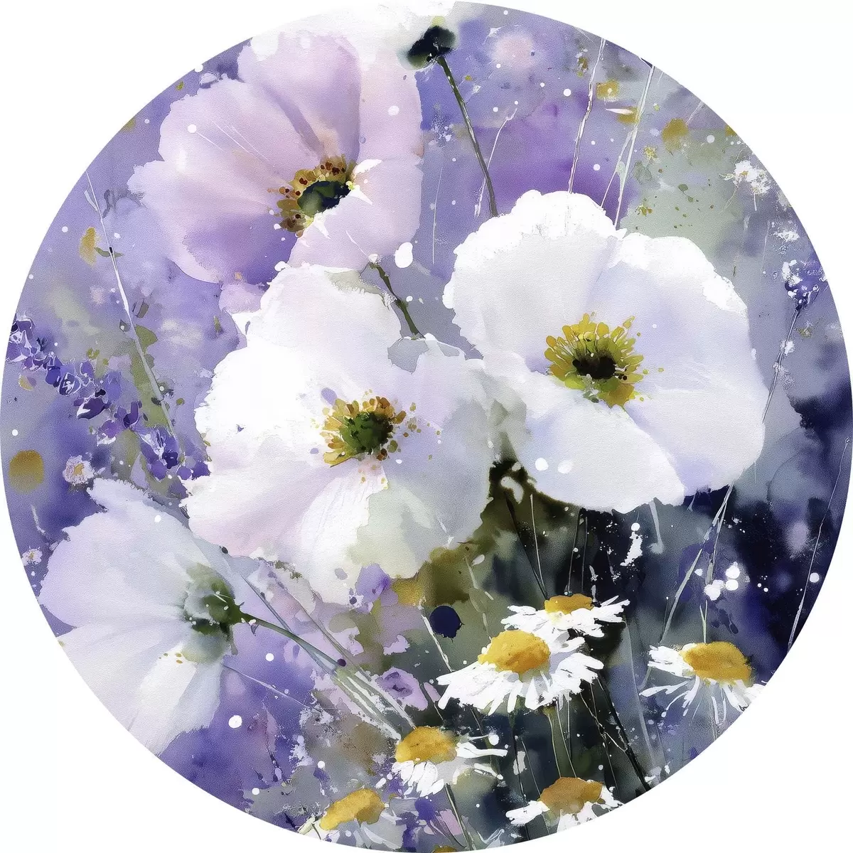 Quadri rotondi bouquet acquerellato nei toni del lilla e del bianco r45719