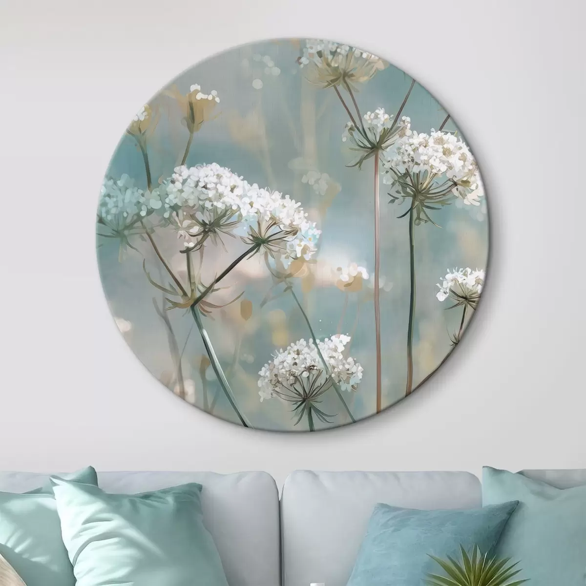 Quadri rotondi Fiori di Queen Anne's Lace in stile acquerello su sfondo blu r45721