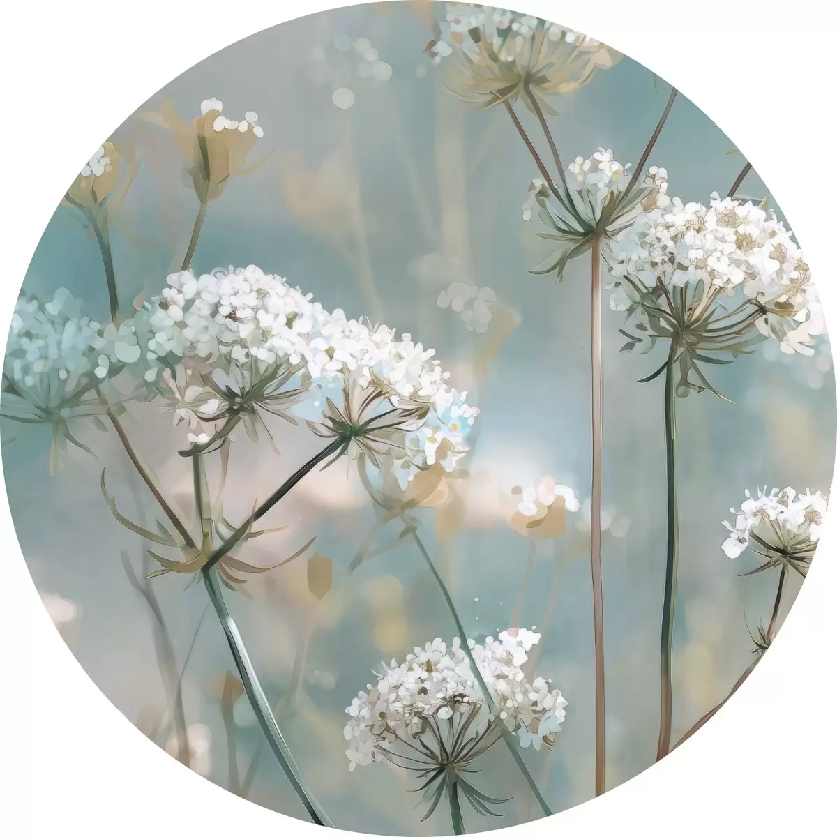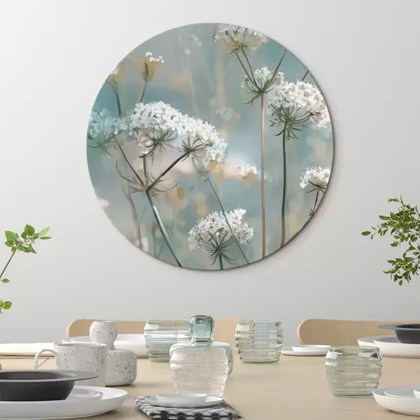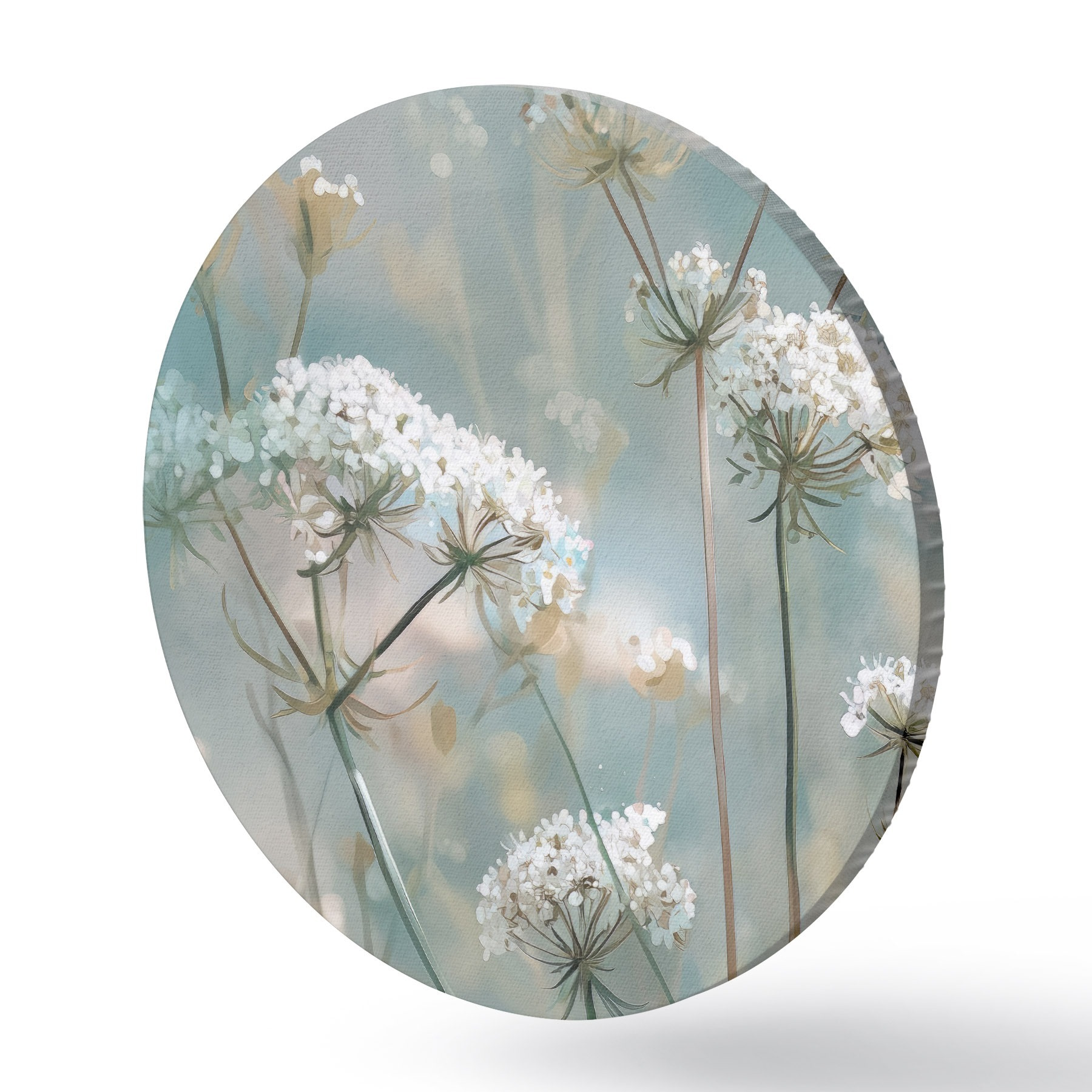Quadri rotondi Fiori di Queen Anne's Lace in stile acquerello su sfondo blu r45721