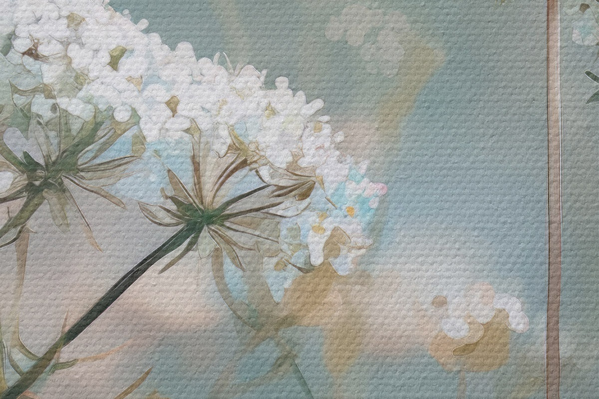 Immagine Fiori di Queen Anne's Lace in stile acquerello su sfondo blu Nr r45721