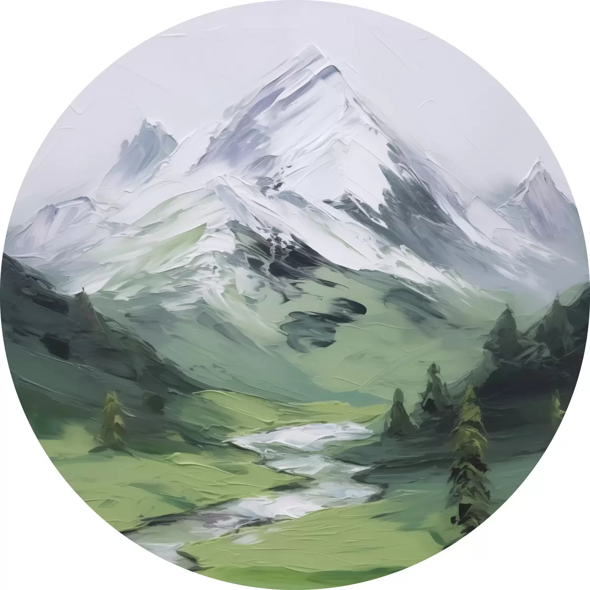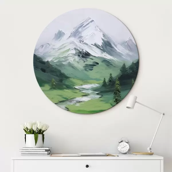 Quadri rotondi Dipinto che imita una valle di montagna r45775