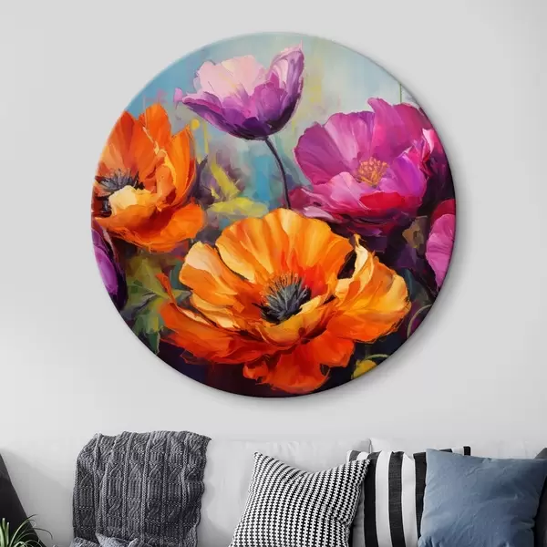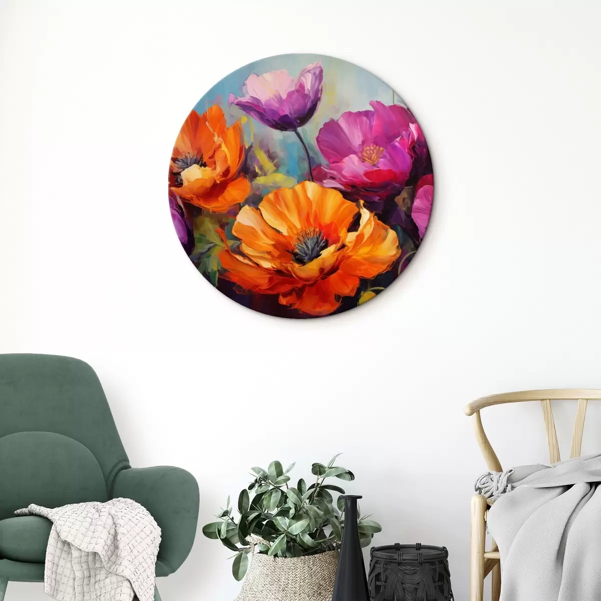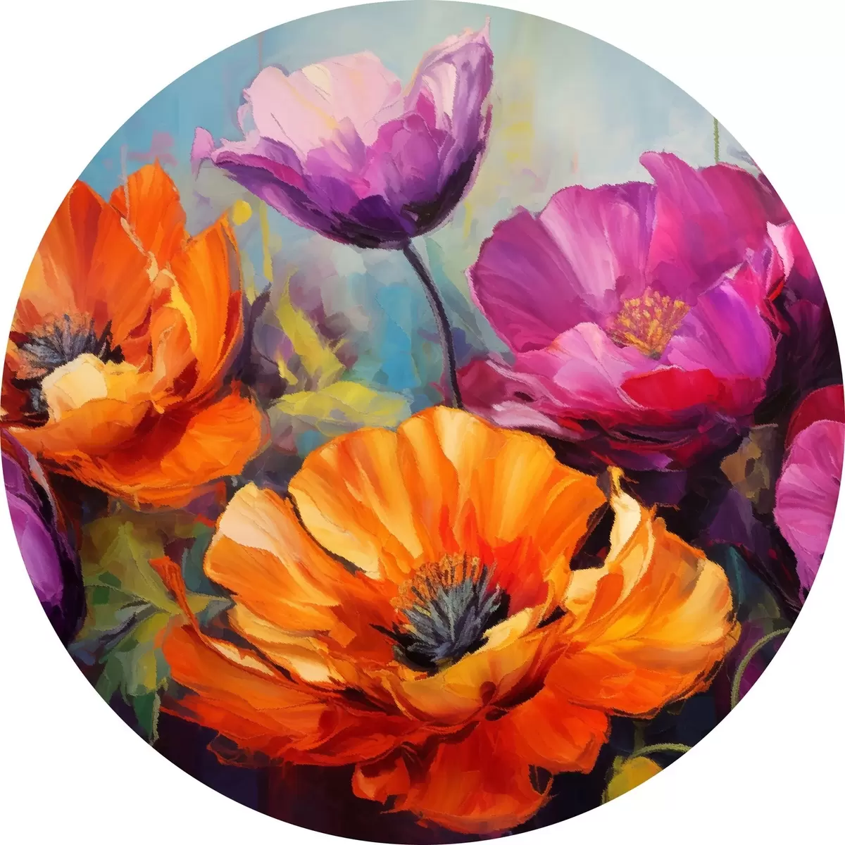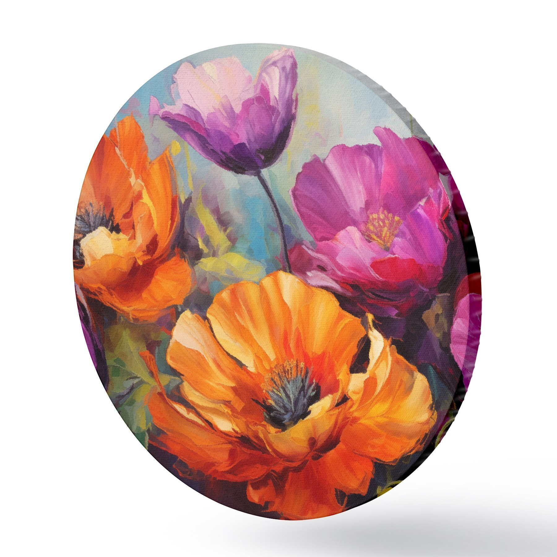 Quadri rotondi Papaveri dai colori vivaci nelle tonalità del viola e dell'arancione r45804