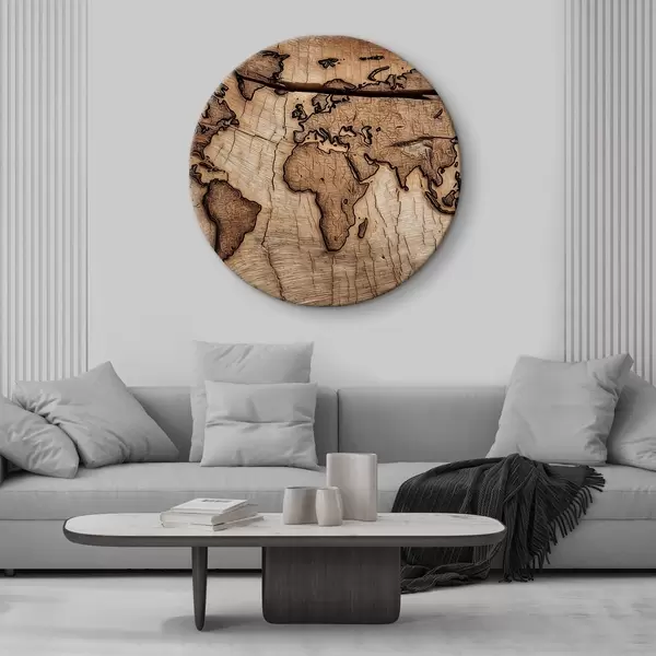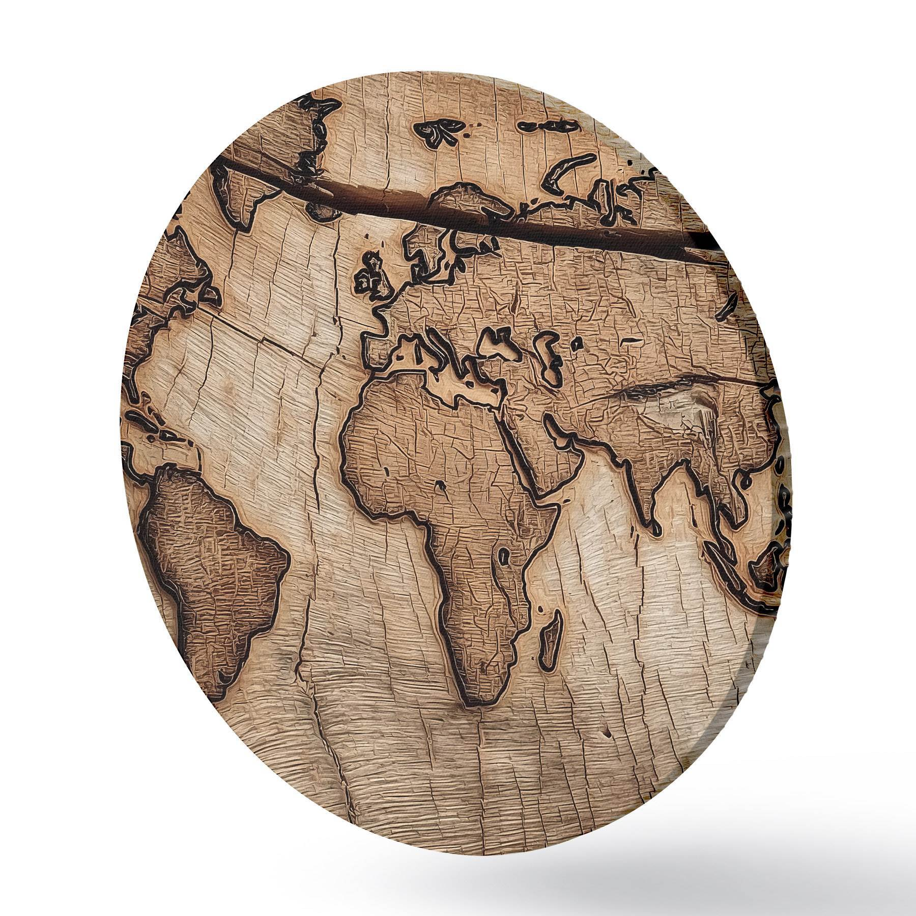 Quadri rotondi Mappa del mondo incisa su legno r45805
