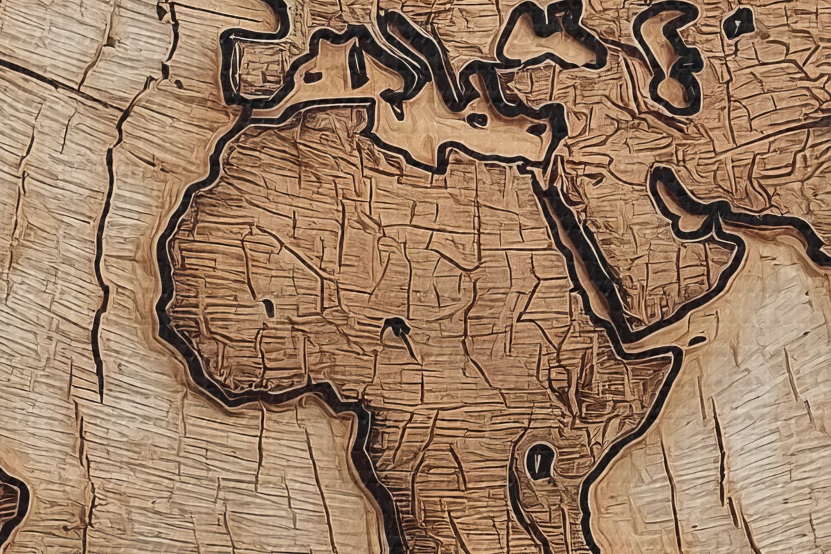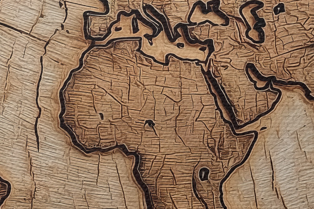 Immagine Mappa del mondo incisa su legno Nr r45805