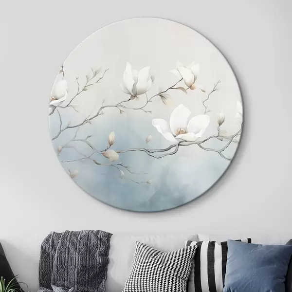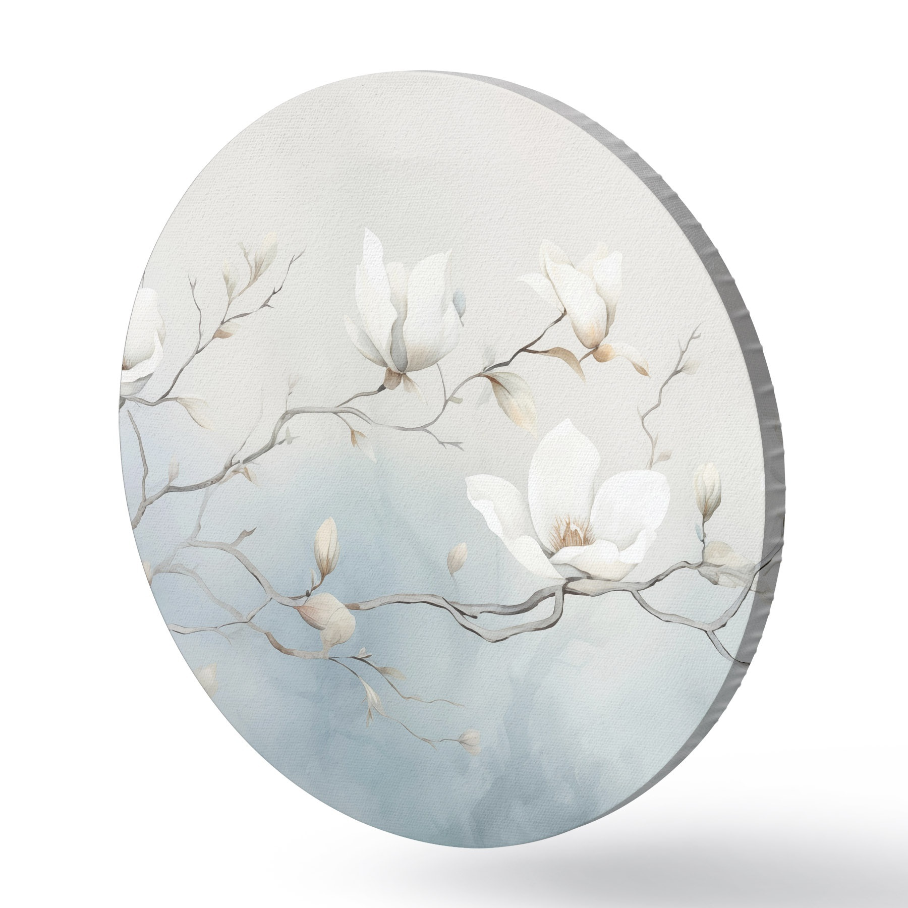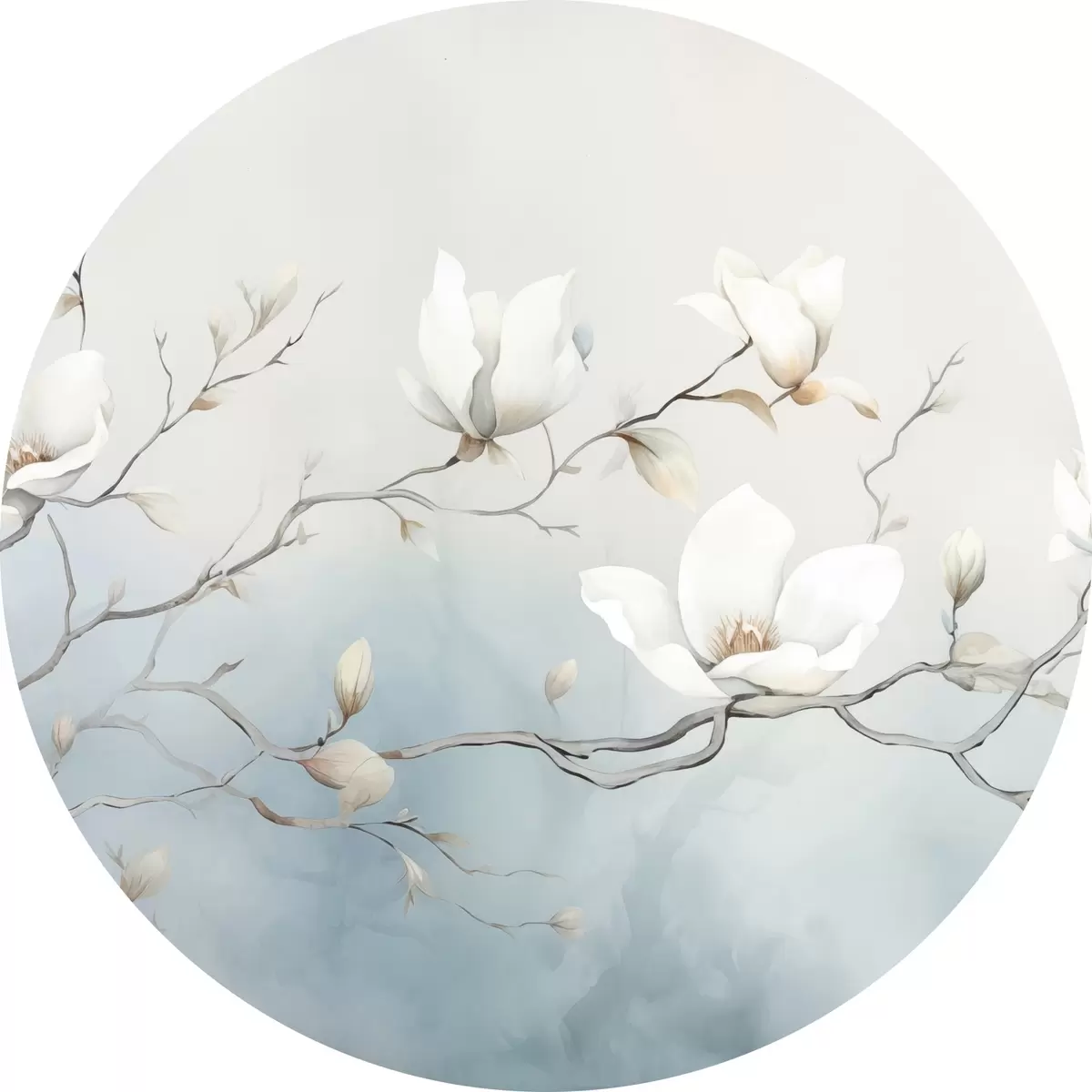 Quadri rotondi Rami di magnolia con fiori bianchi su uno sfondo delicato r45806