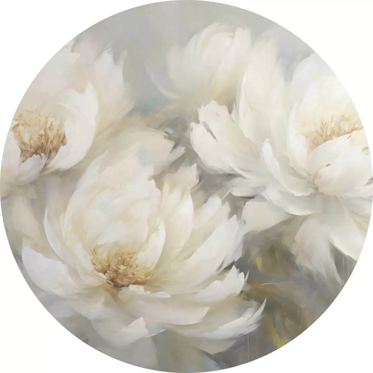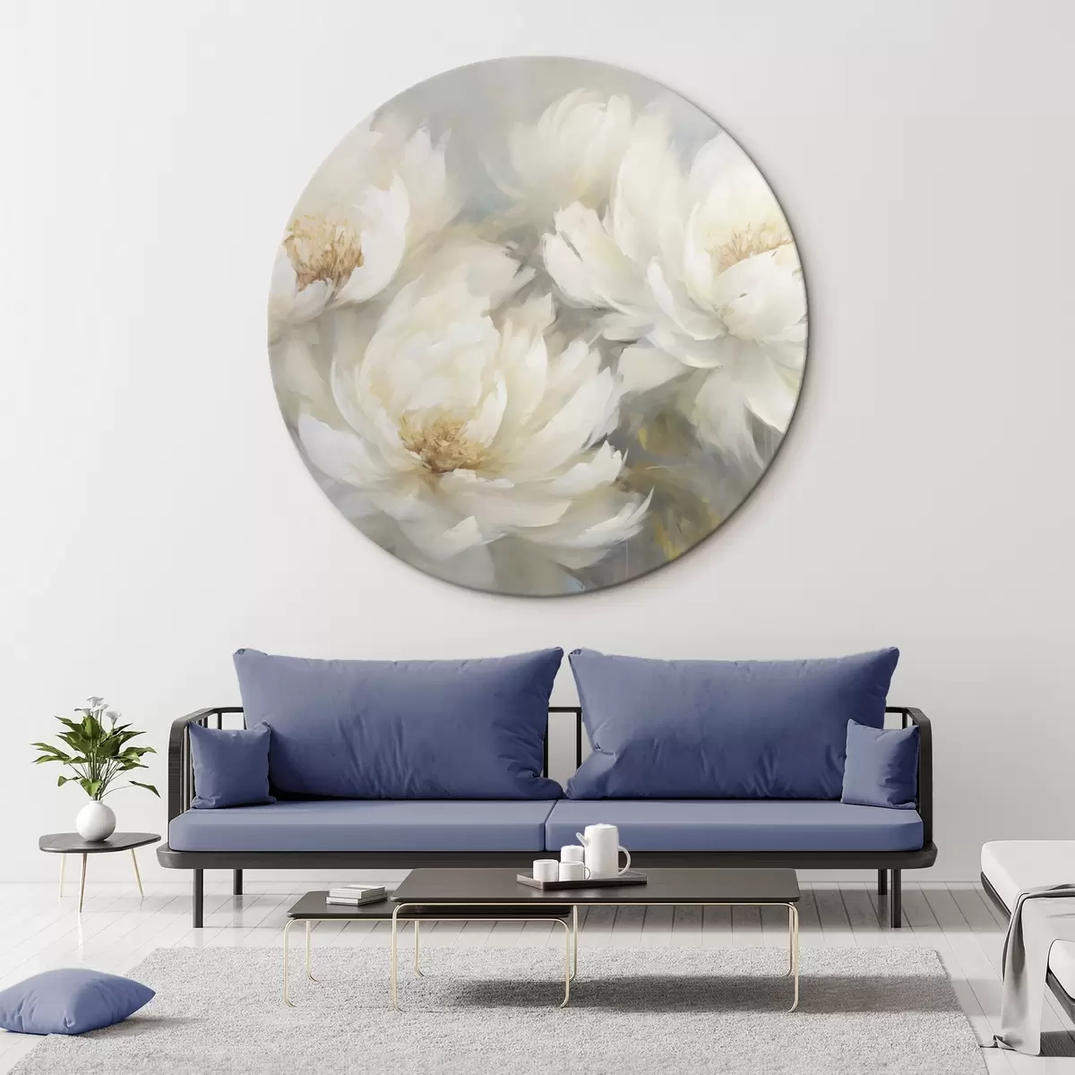 Quadri rotondi Tre rigogliose peonie bianche su uno sfondo delicato r45808