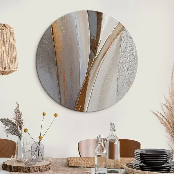 Quadri rotondi Linee astratte strutturate con riflessi gialli e arancioni r45810