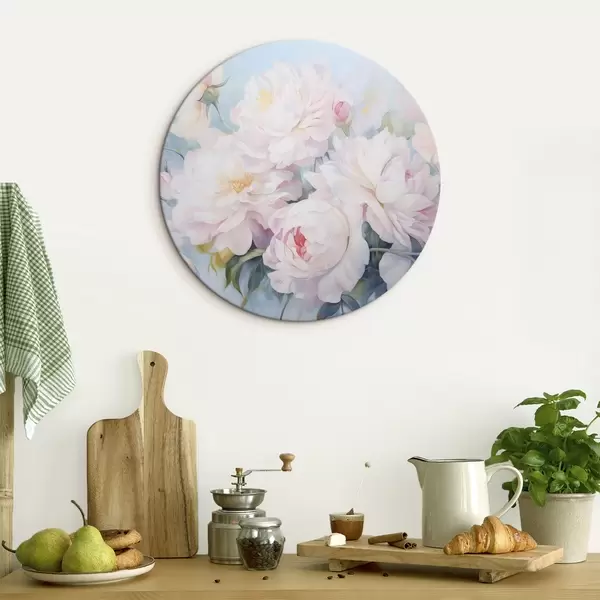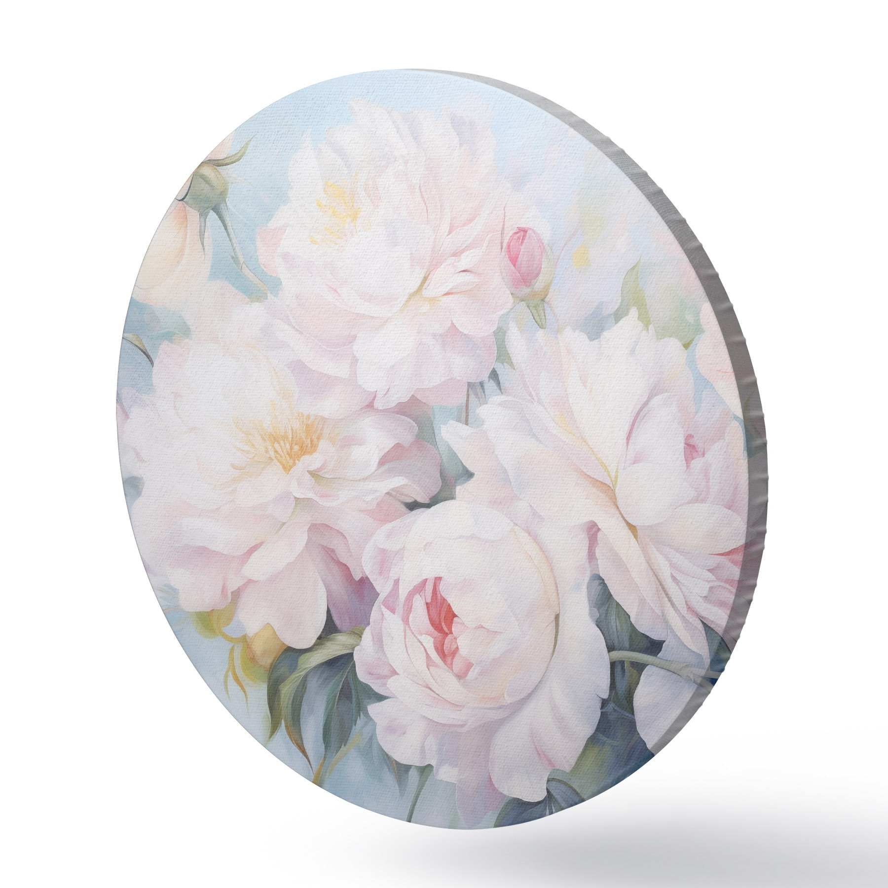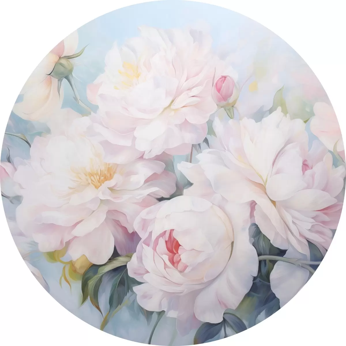 Quadri rotondi Delicate peonie rosa su sfondo azzurro cielo r45813