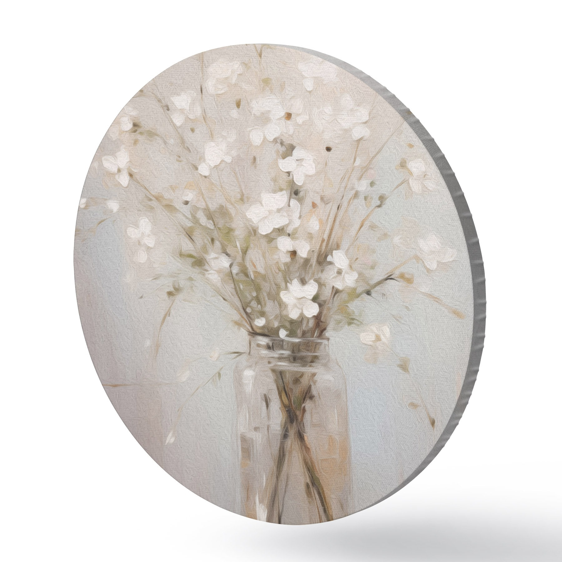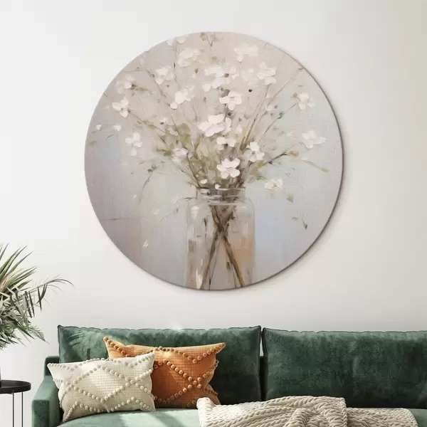 Quadri rotondi Un bouquet di fiori bianchi in un vaso di vetro trasparente r45814