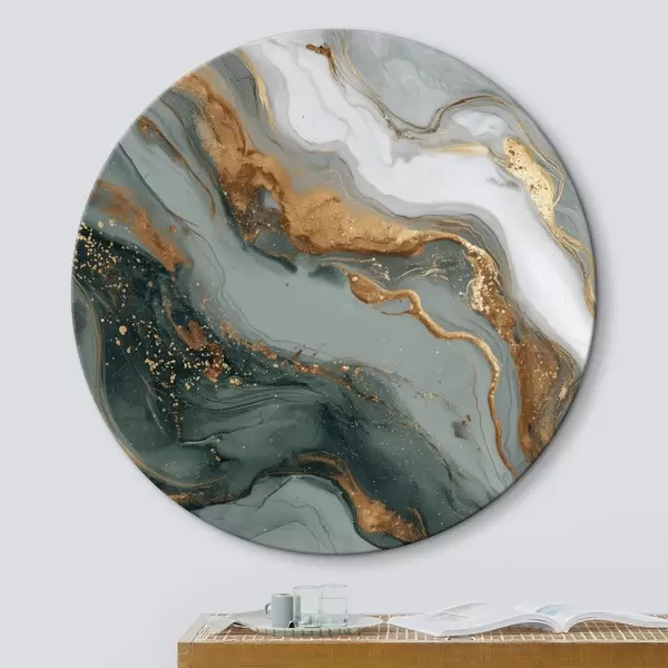 Quadri rotondi Astrazione con striature verde scuro e grigio r45858