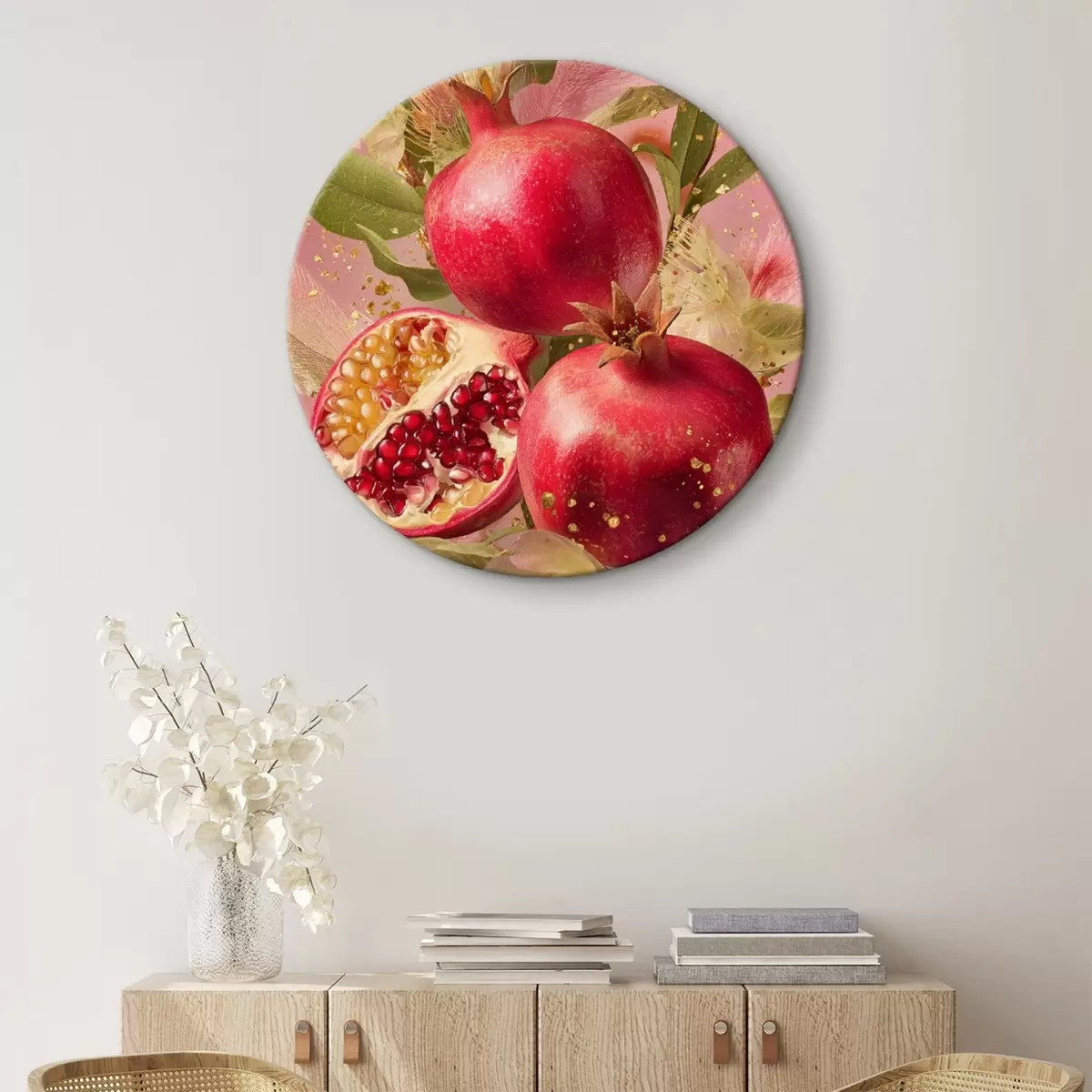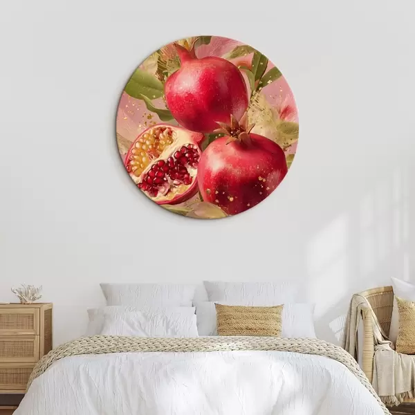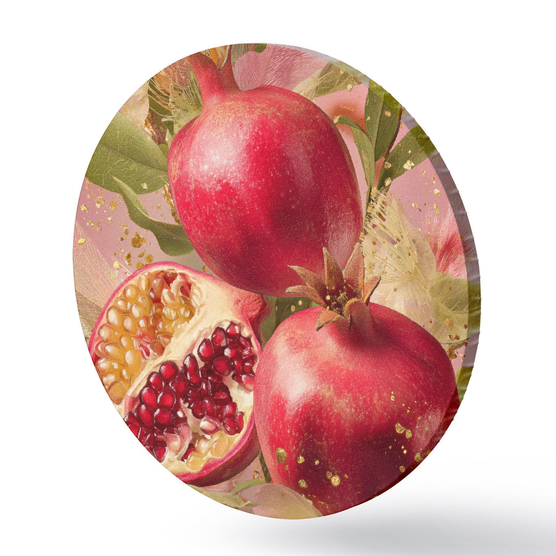 Quadri rotondi Meloni maturi su sfondo rosa con foglie e macchie r45868
