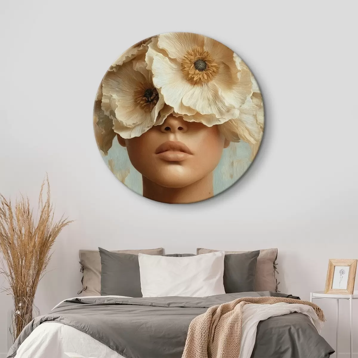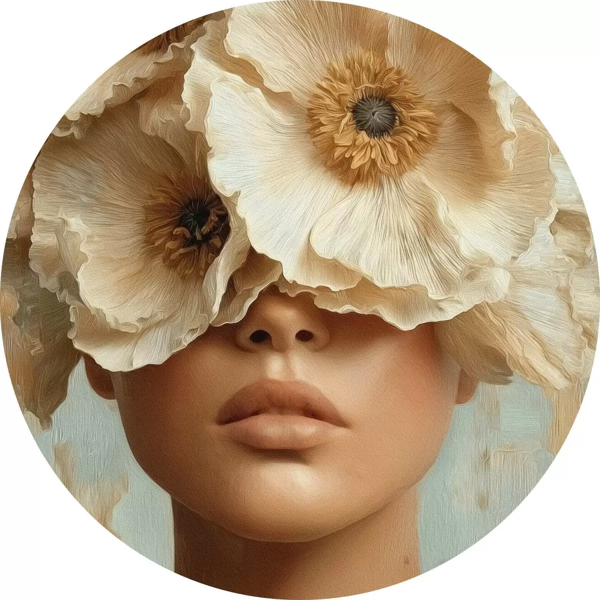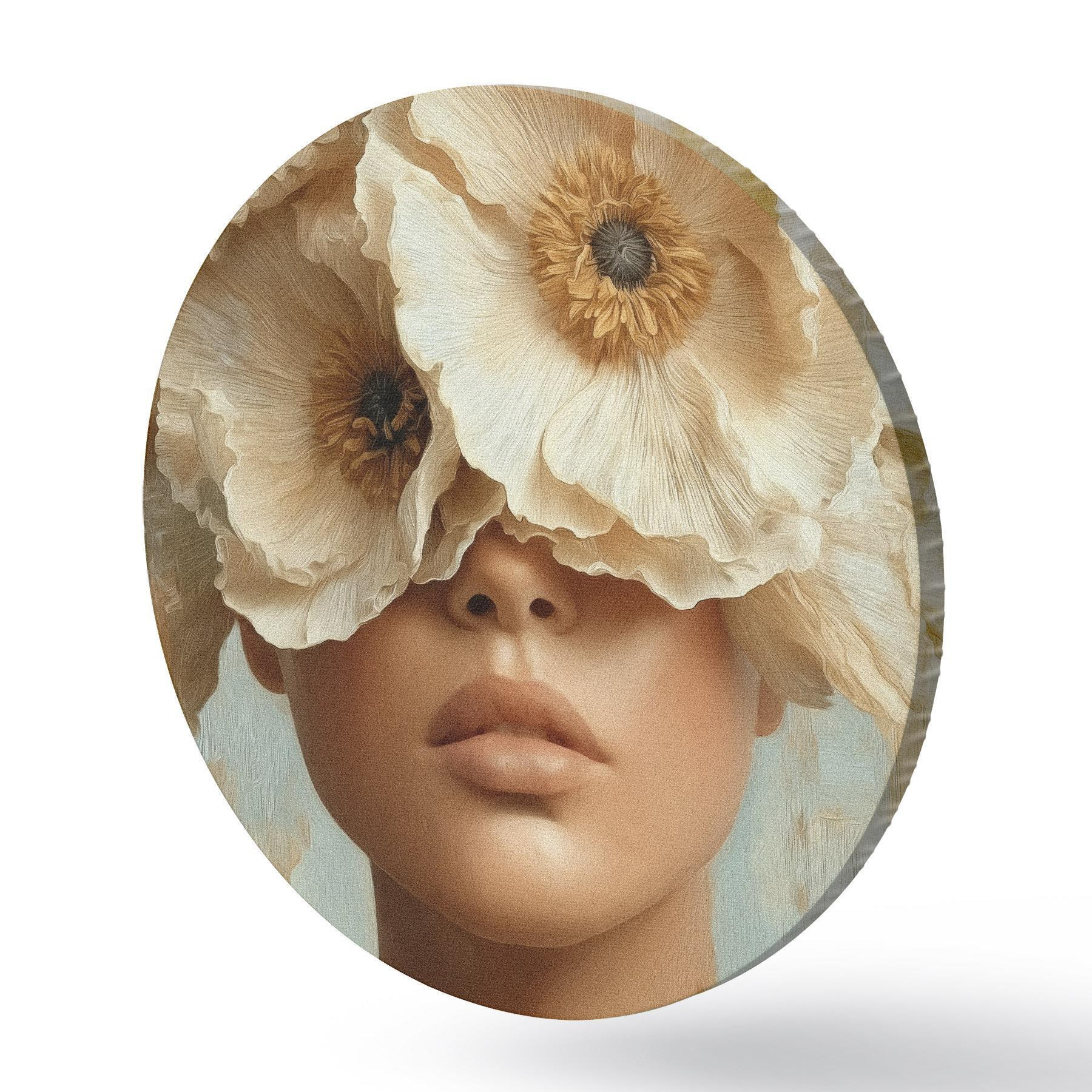 Quadri rotondi Ritratto con fiori beige che coprono gli occhi r45870