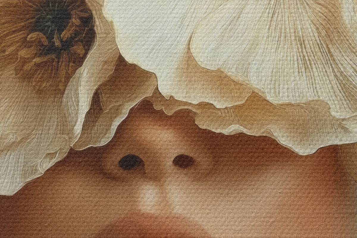 Immagine Ritratto con fiori beige che coprono gli occhi Nr r45870
