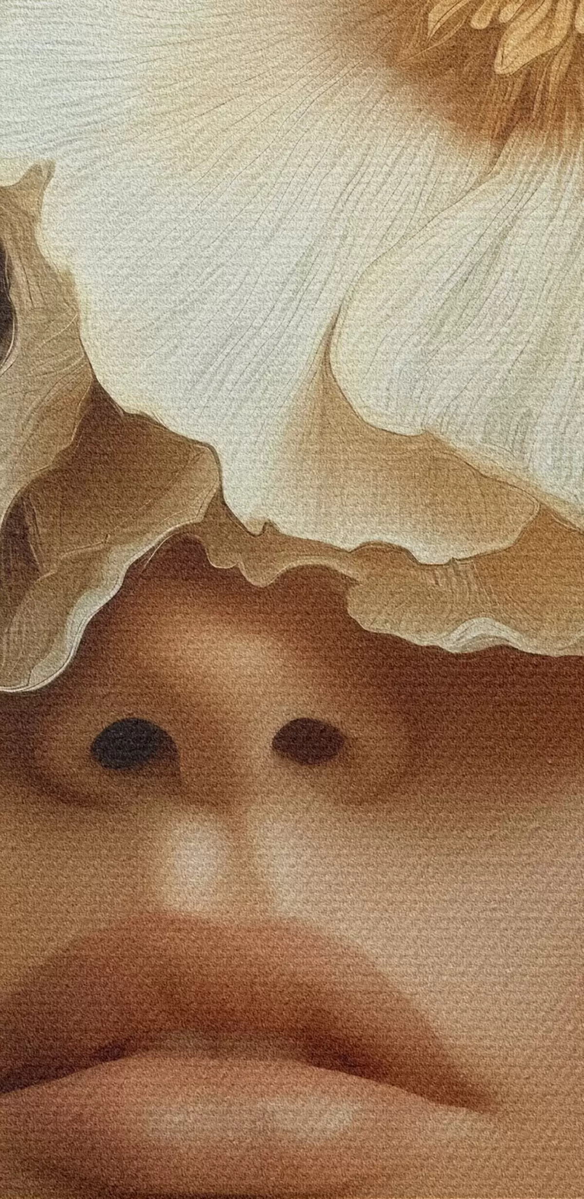 Immagine Ritratto con fiori beige che coprono gli occhi Nr r45870