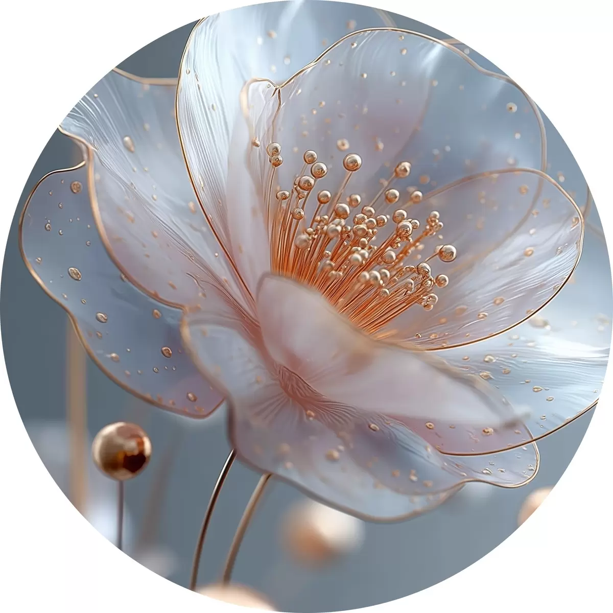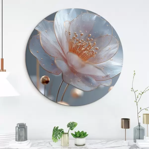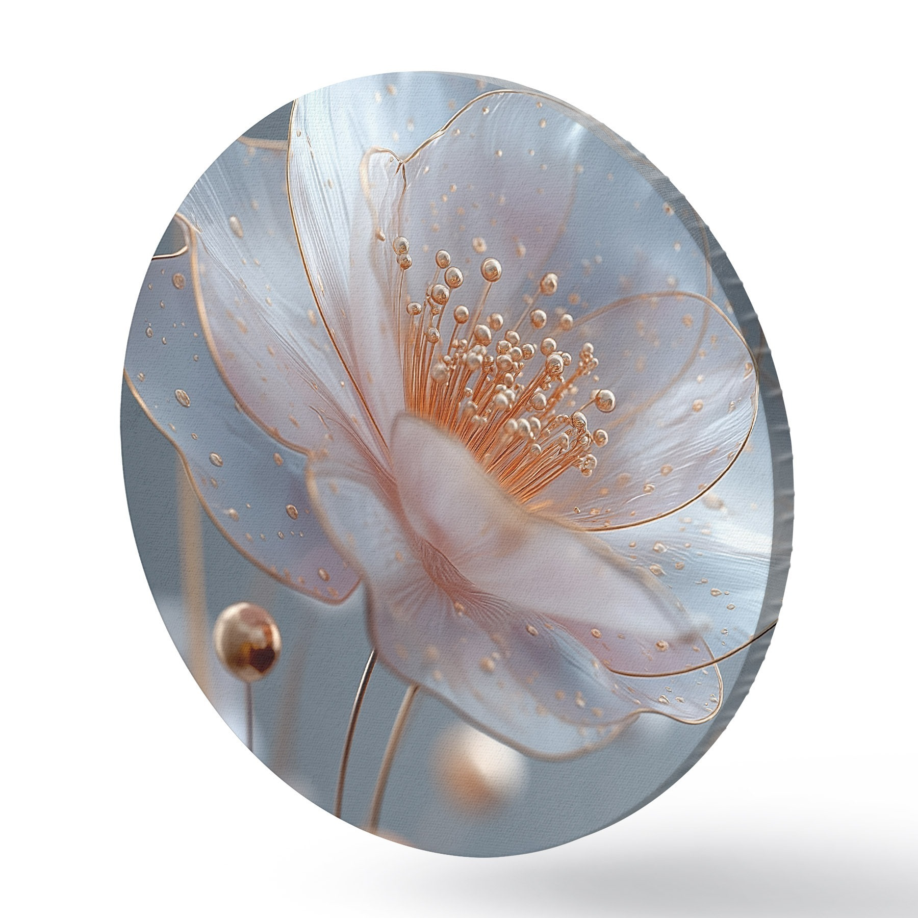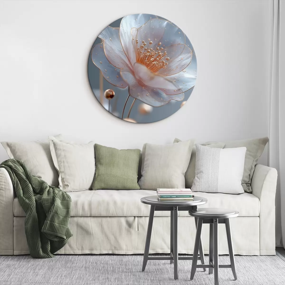 Quadri rotondi Fiore traslucido con stami color rame su sfondo blu r45880