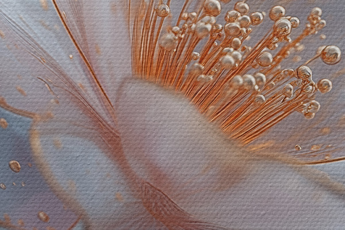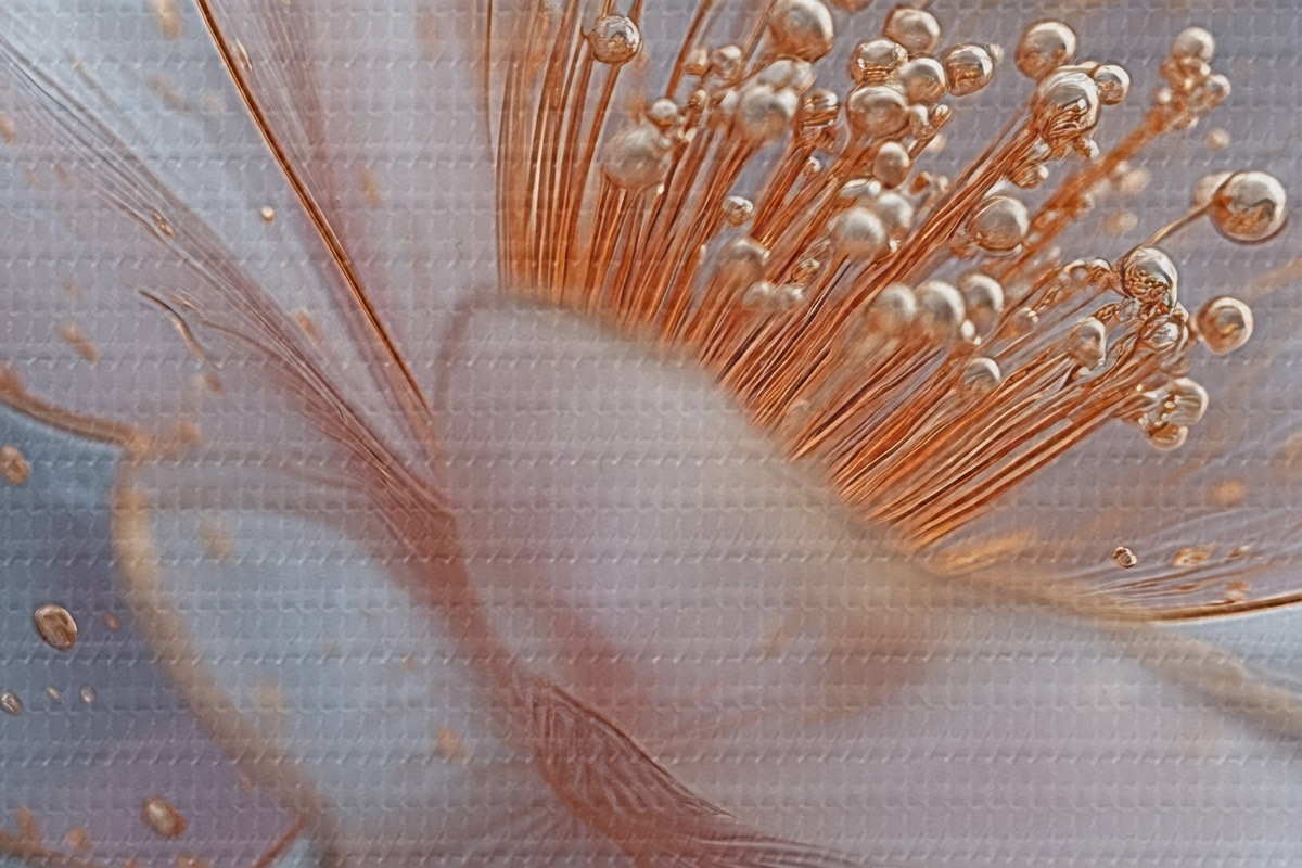 Immagine Fiore traslucido con stami color rame su sfondo blu Nr r45880