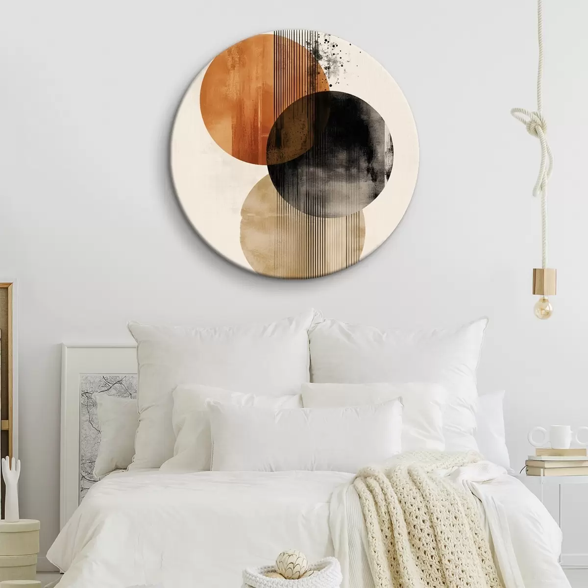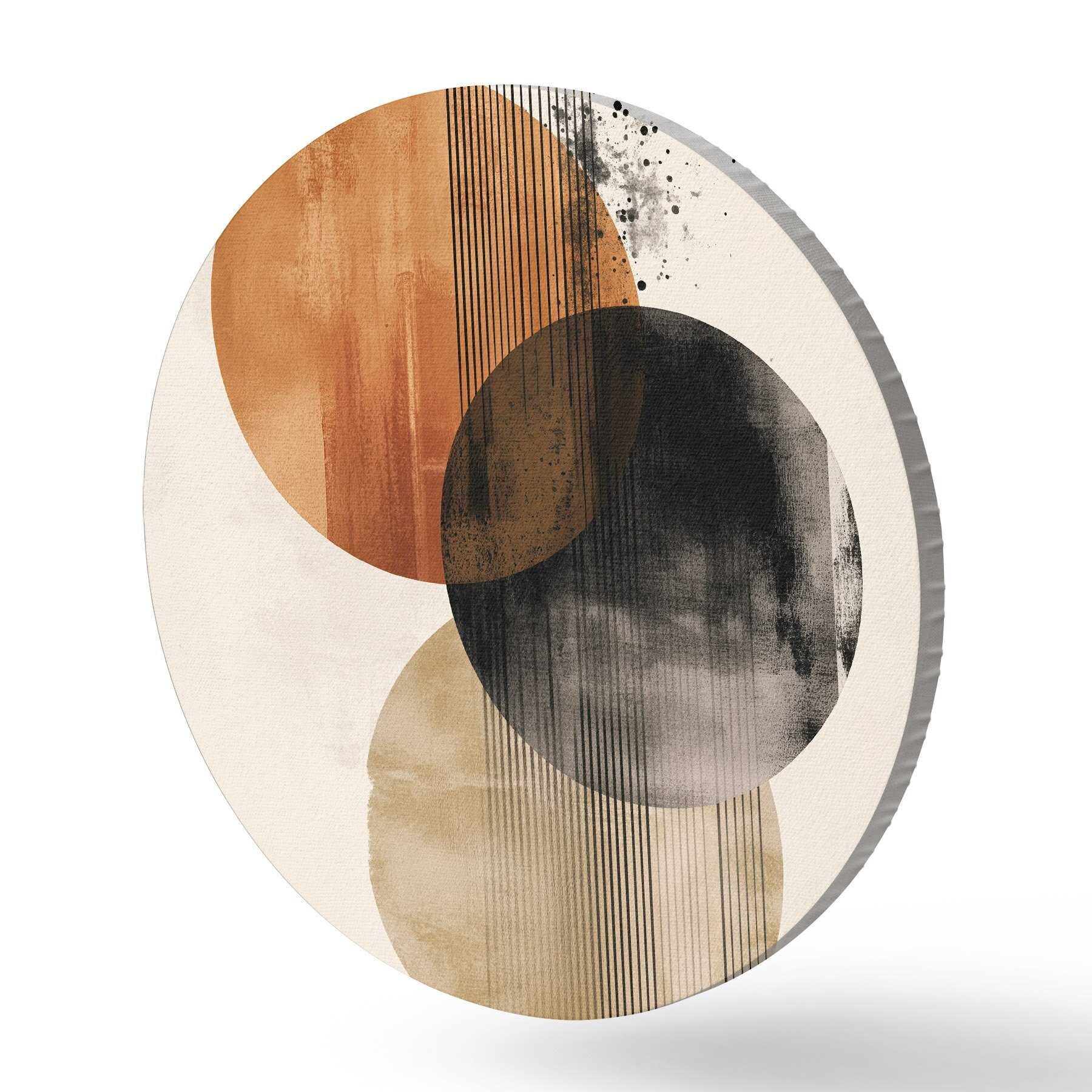 Quadri rotondi Tre cerchi testurizzati con linee in una palette di colori terracotta-nero r45885