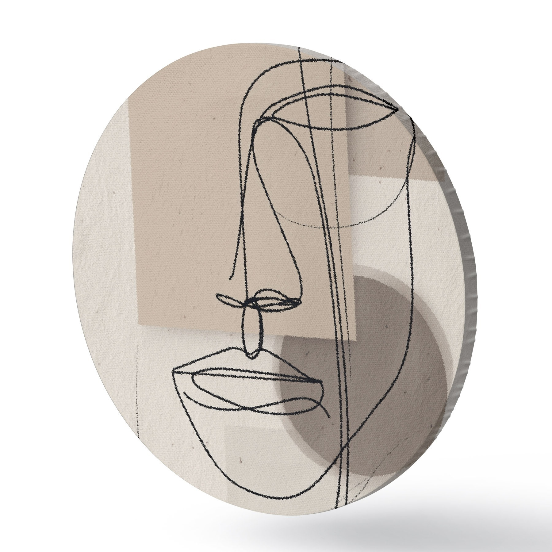 Quadri rotondi Ritratto in linea su forme geometriche beige r45886