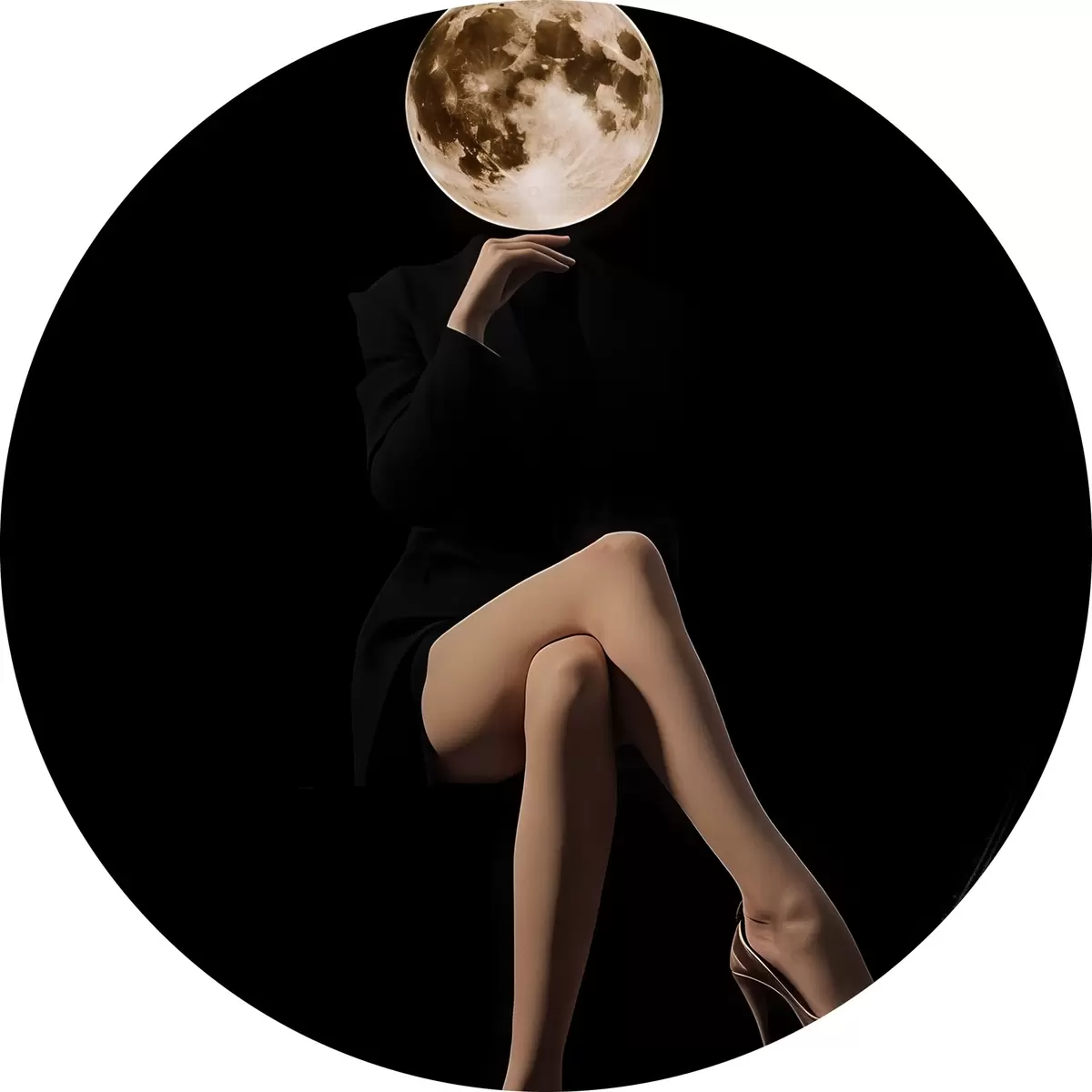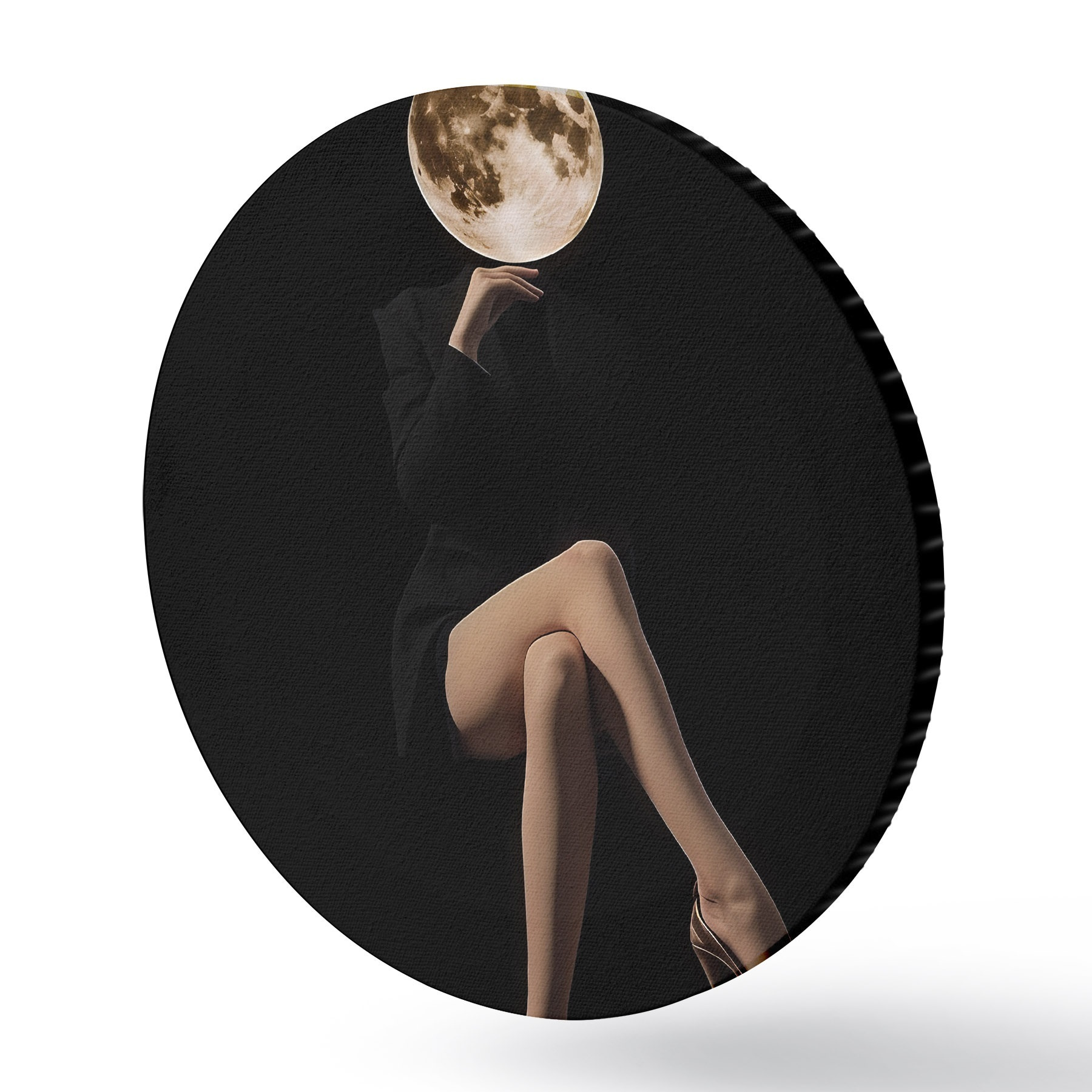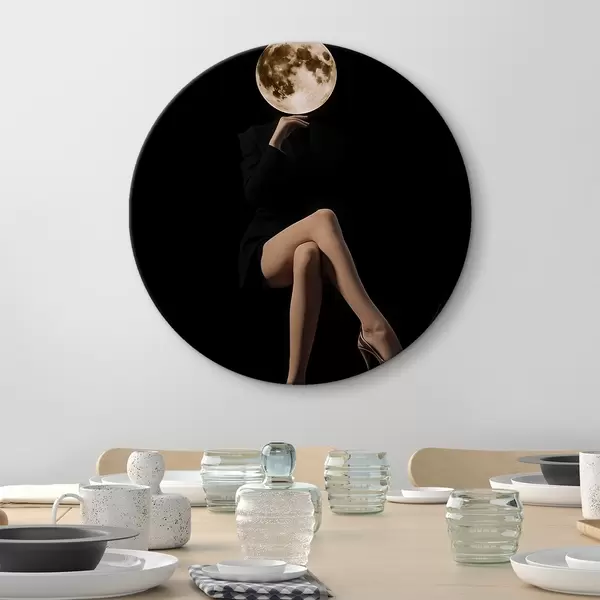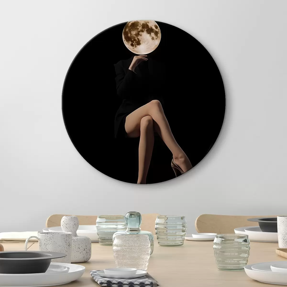 Quadri rotondi Silhouette con la luna al posto del viso, minimalismo r45891