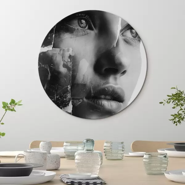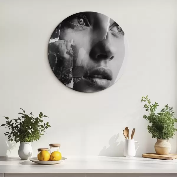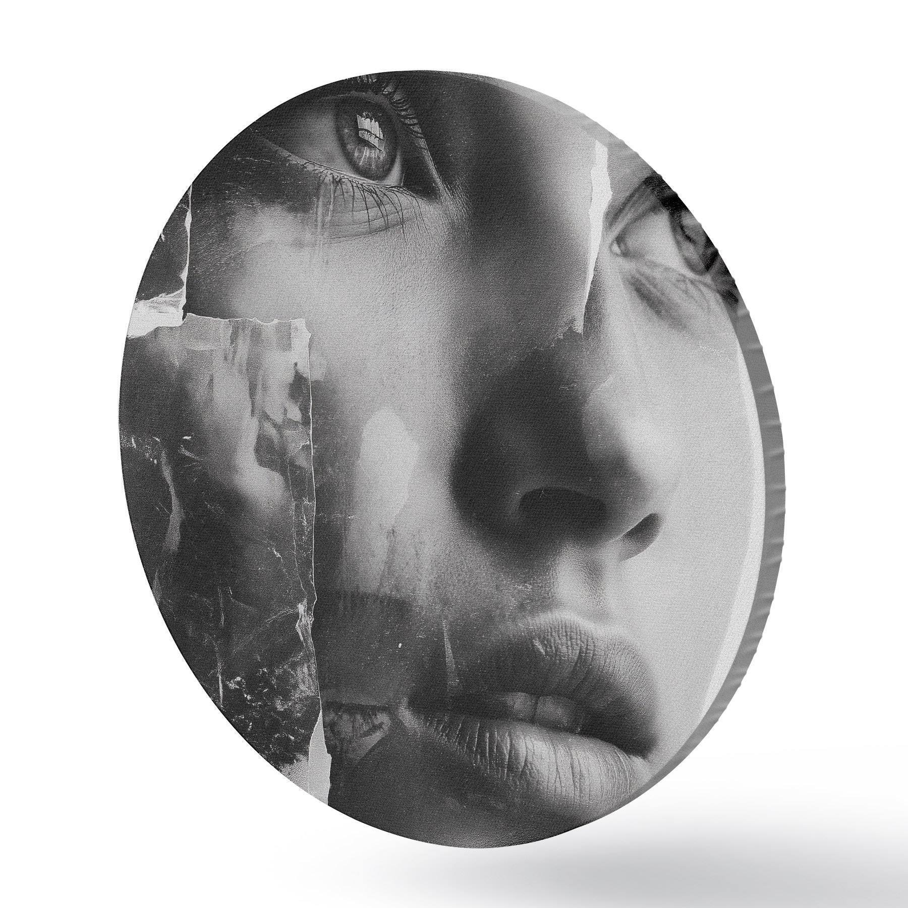 Quadri rotondi Ritratto collage in bianco e nero con strati strappati e testurizzati r45898