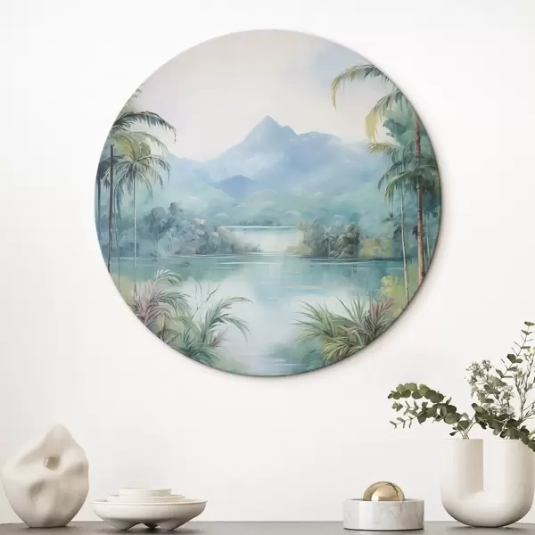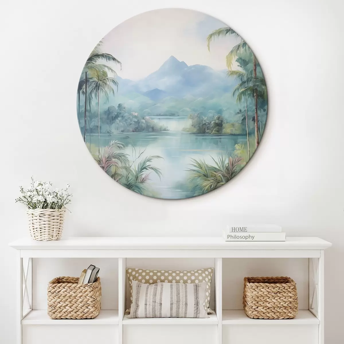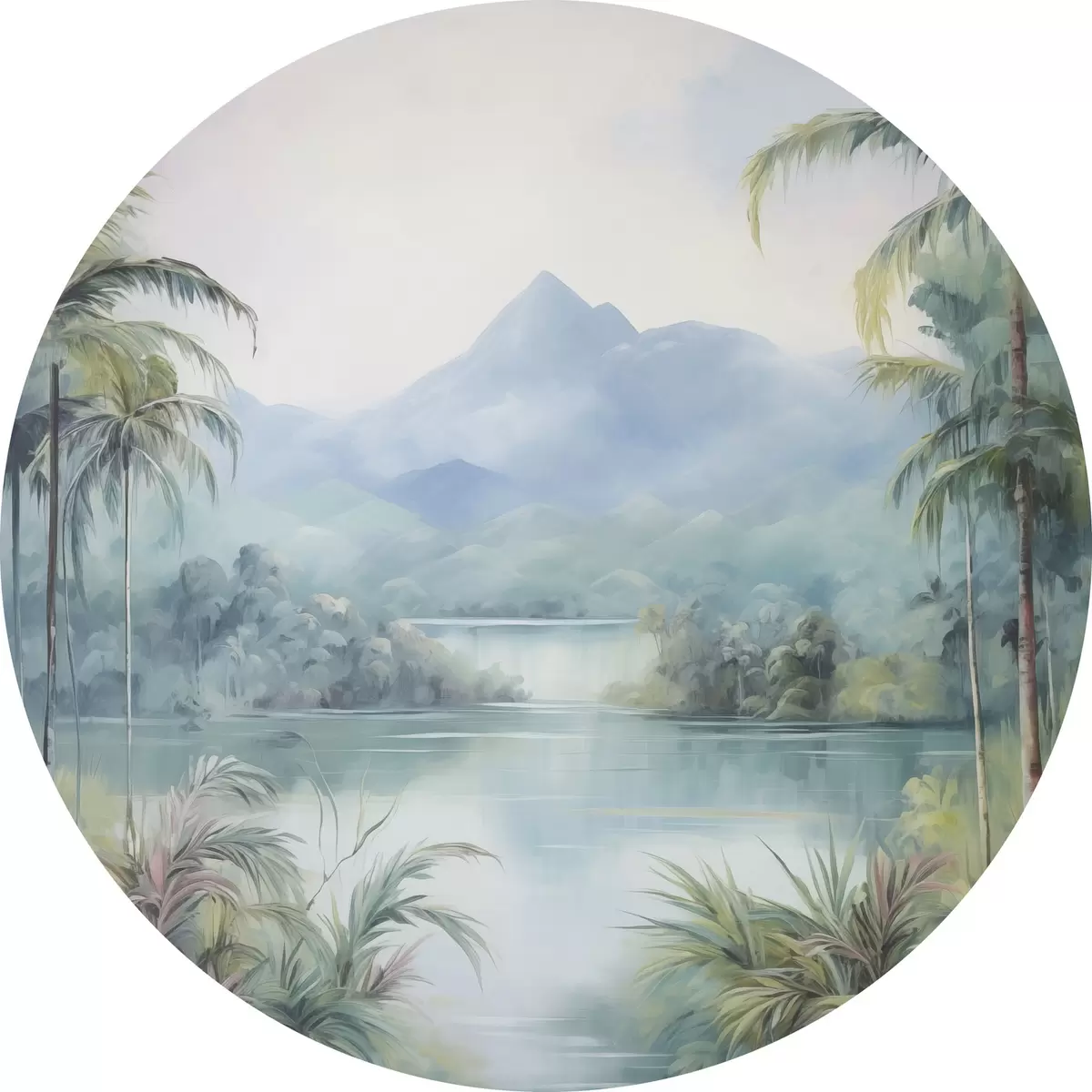 Quadri rotondi Fiume nella giungla di fronte alla montagna r45912