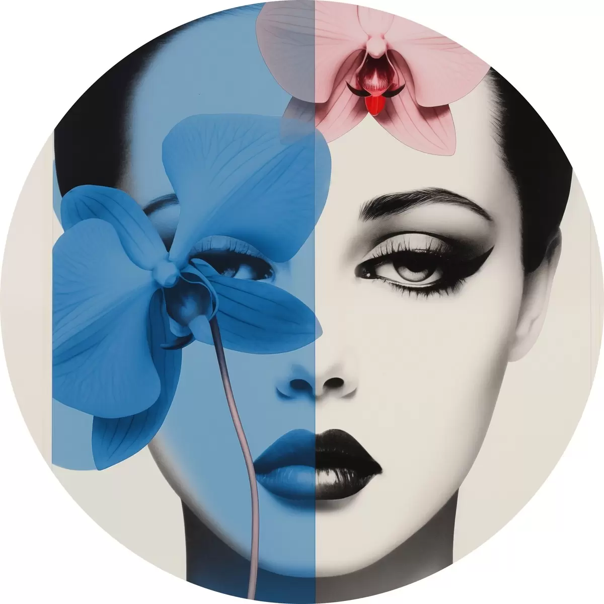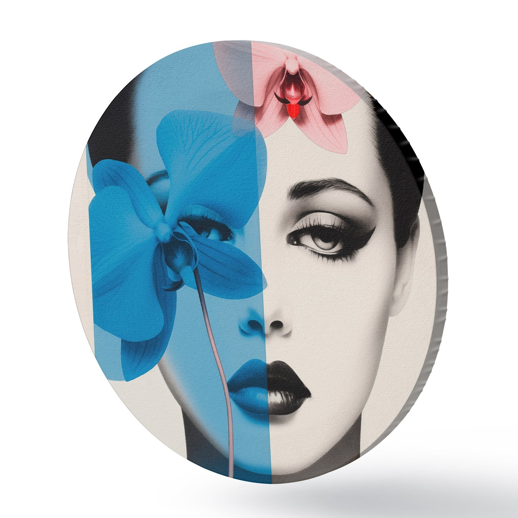 Quadri rotondi Ritratto astratto di una donna con orchidee r45924