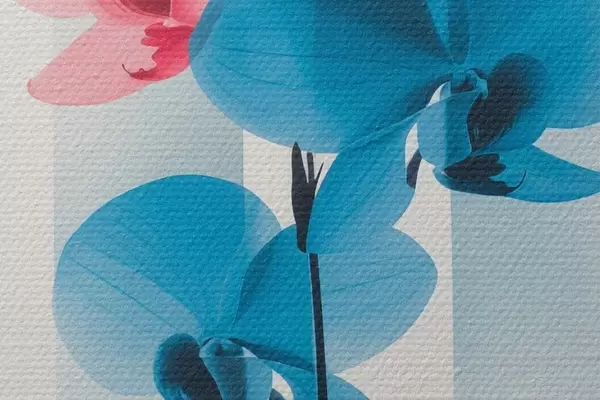 Immagine Orchidee con foglie su sfondo bianco con strisce verticali Nr r45925