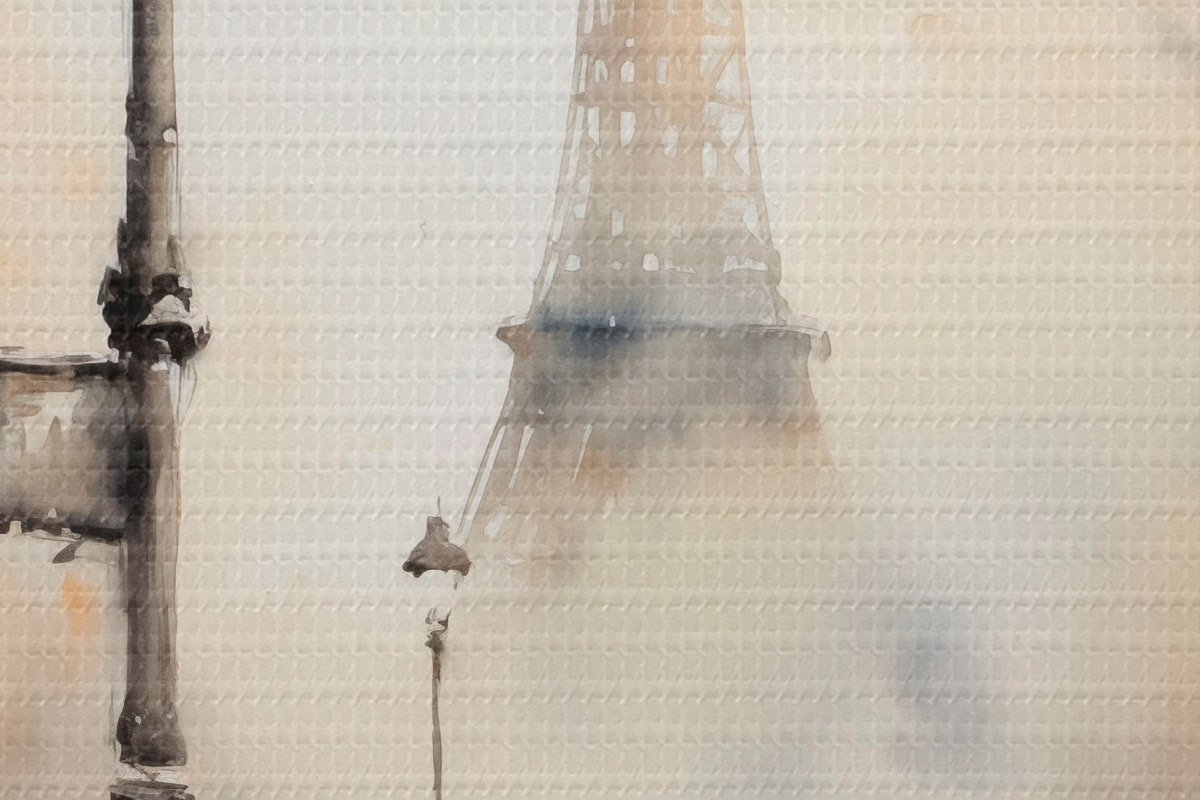 Immagine Una piovosa giornata autunnale a Parigi con la Torre Eiffel sullo sfondo e lampioni vintage Nr r45931