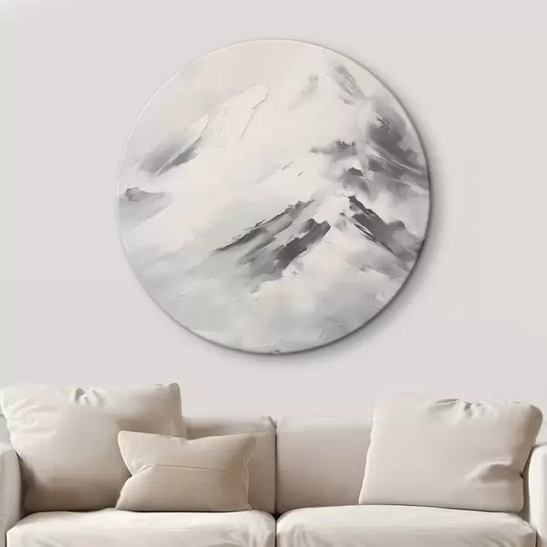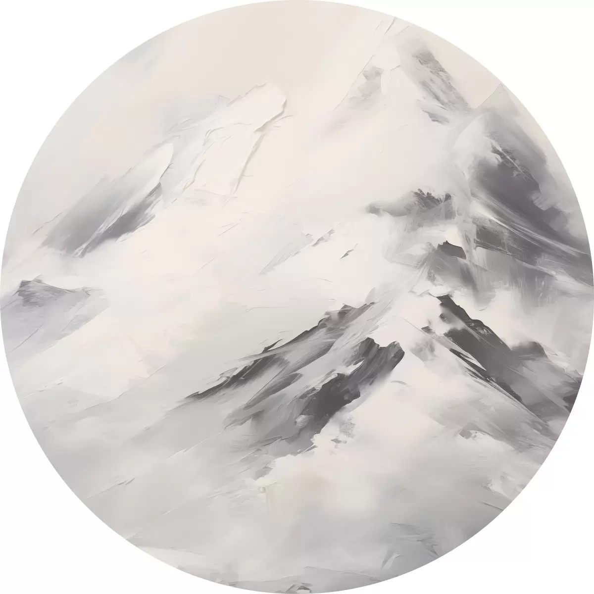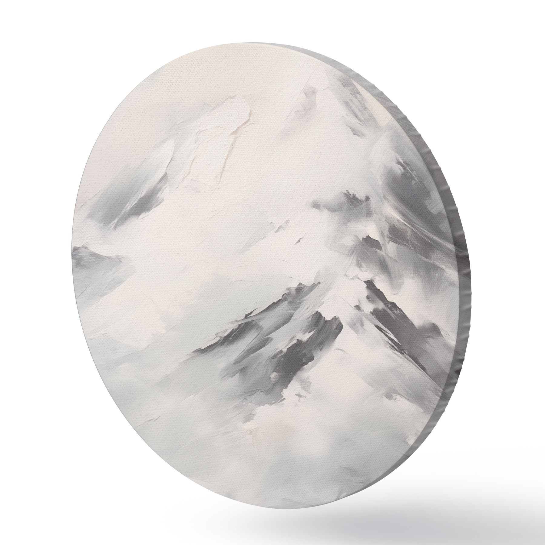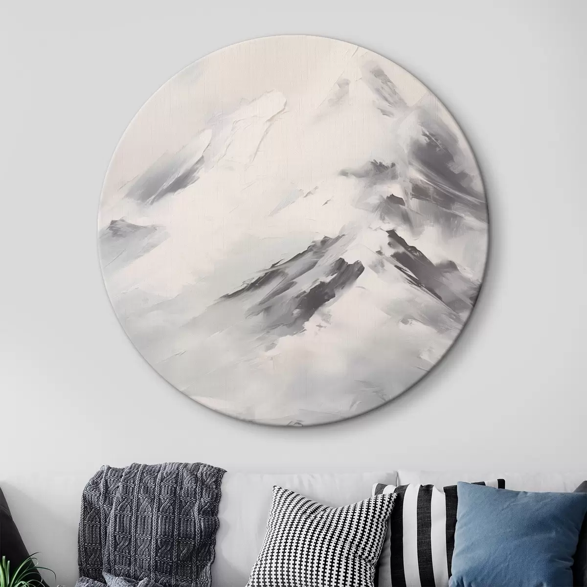 Quadri rotondi Cime innevate con ombre grigie, cielo grigio, pennellate, texture, minimalista r45932