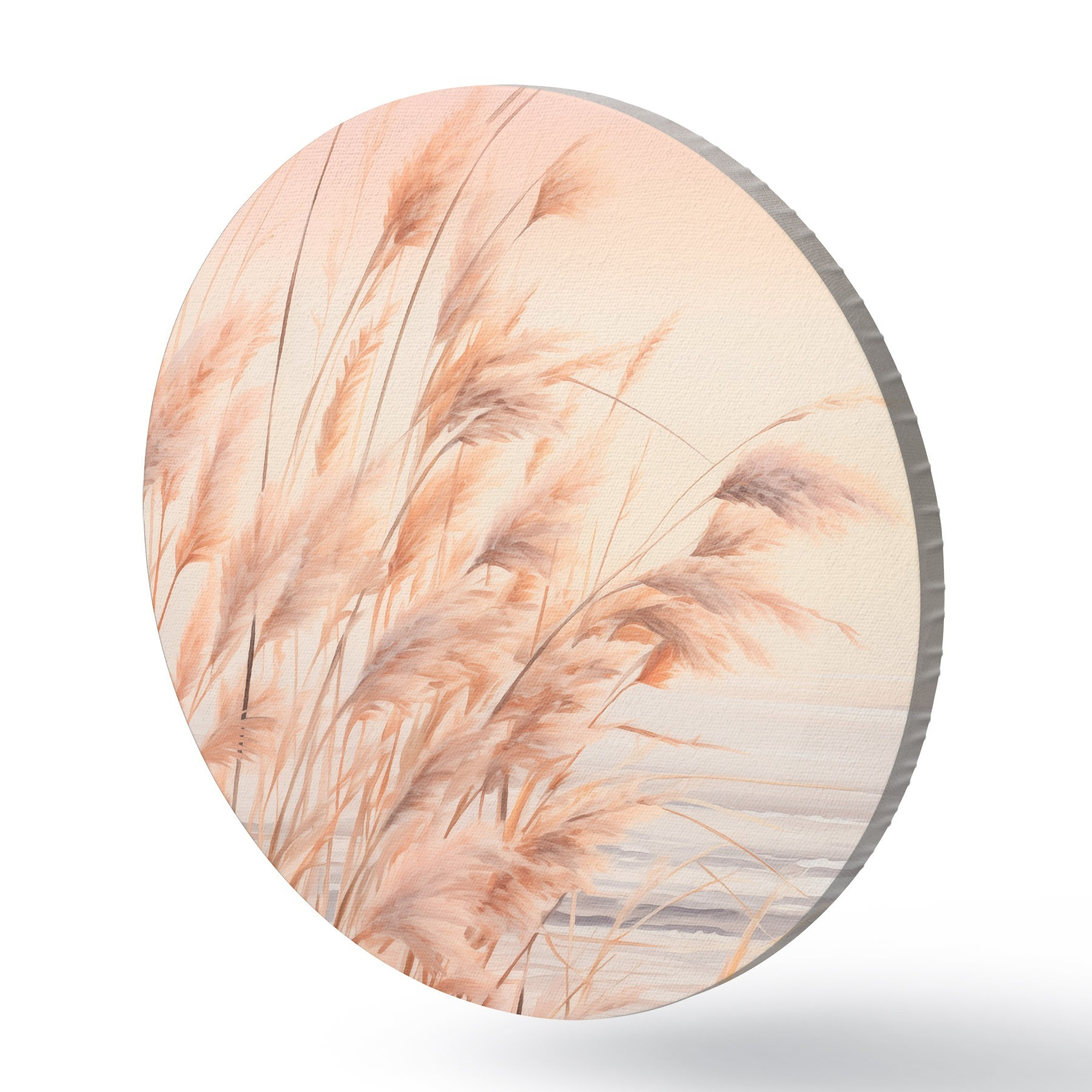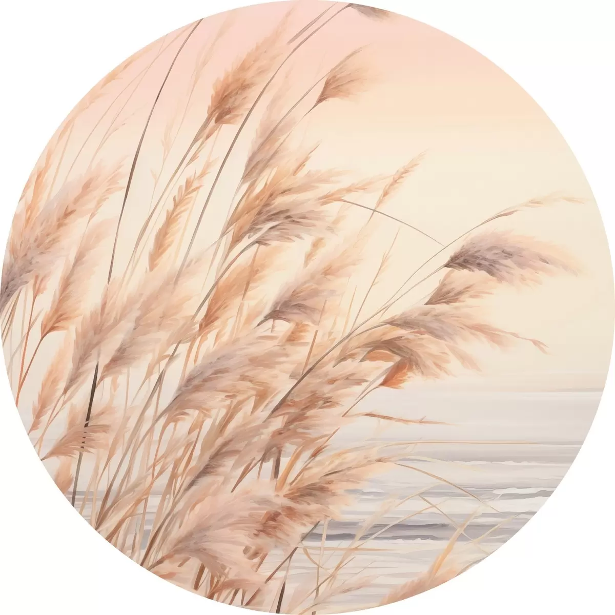 Quadri rotondi Erba della Pampa con una tavolozza di colori arancione pastello, cielo rosa chiaro, un paesaggio tranquillo r45934